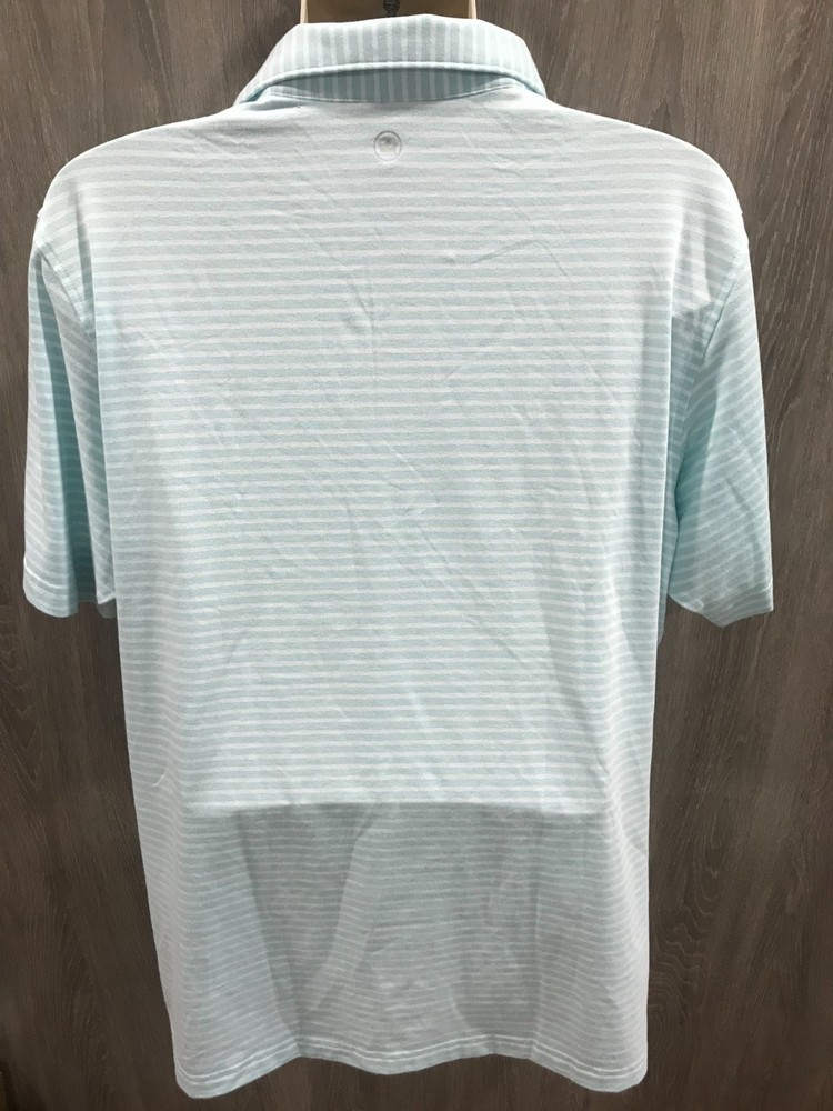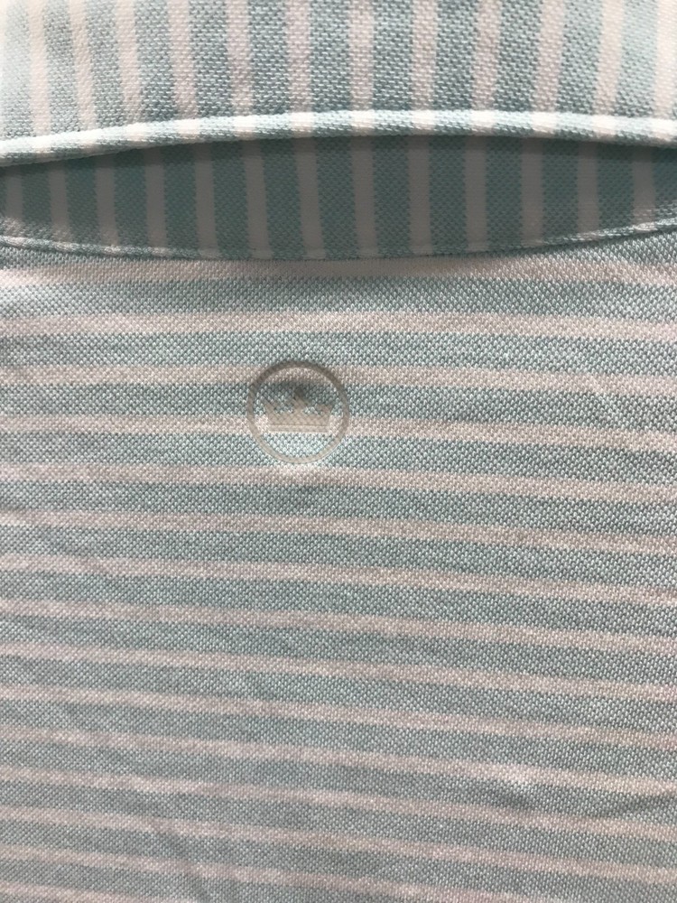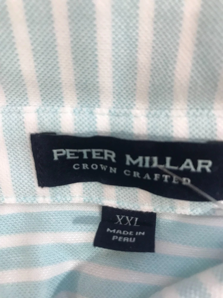 Description: Peter Millar Crown Crafted Men's (Size XXL) Ice Aqua Short Sleeve Striped Performance Mesh Polo . (See pictures) Brand: Peter Millar Gender: Men Size: XXL Color: Ice Aqua Pattern : Striped Material: 67% pima cotton, 28% polyester , 5% spandex Condition: New with tags MSRP: $125 Buy It Now Price: $64.99 Shipping: Free Note: Picture Accuracy is about 90%. Slight variance in color may result, due to lighting and camera default settings.