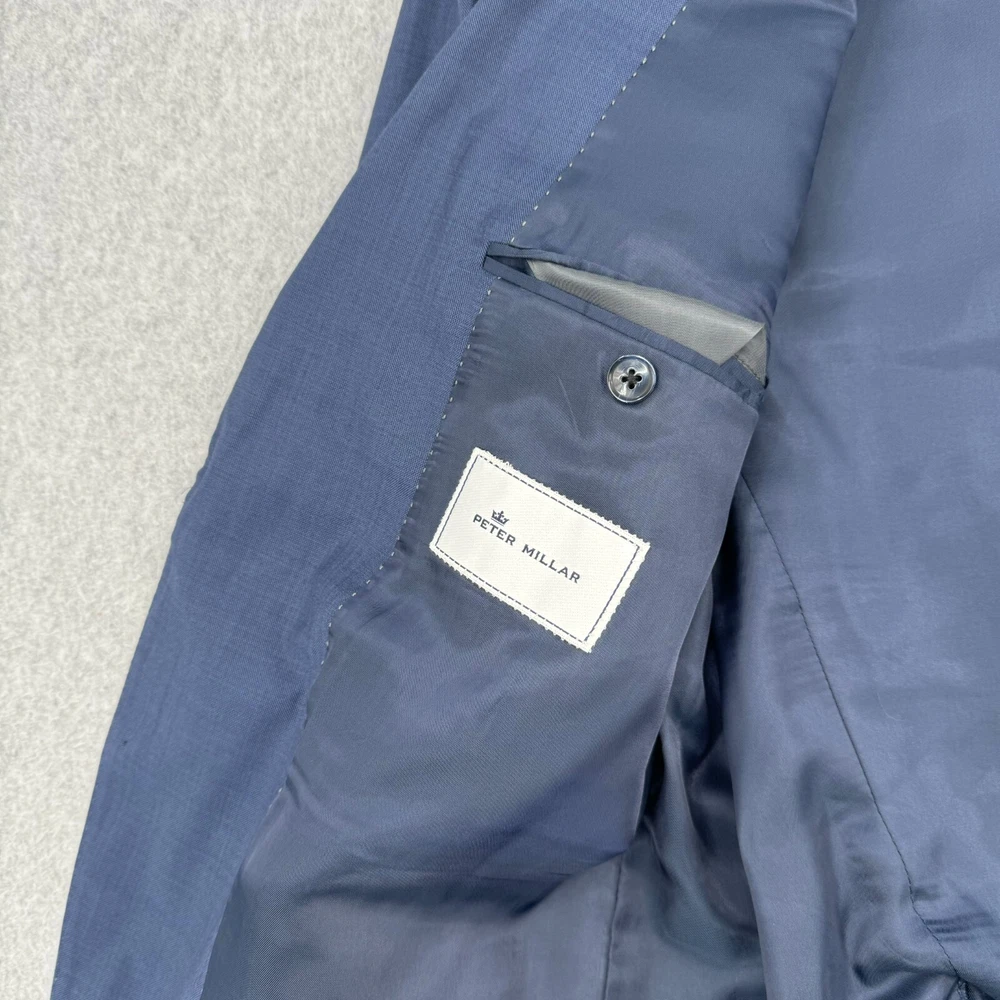 Peter Millar Suit Jacket Men's 46 Regular Blue Double Vent Classic Wool Blazer* Item: The photos provided depict the actual item you will receive. Any defects or spots will be clearly shown in the photos. Shipping: We offer fast and reliable shipping! All orders will be provided with a tracking number to ensure that your item arrives promptly. Return Policy: 30-day hassle-free returns. See our return policies for details. Feel free to reach out to us through eBay with any questions!