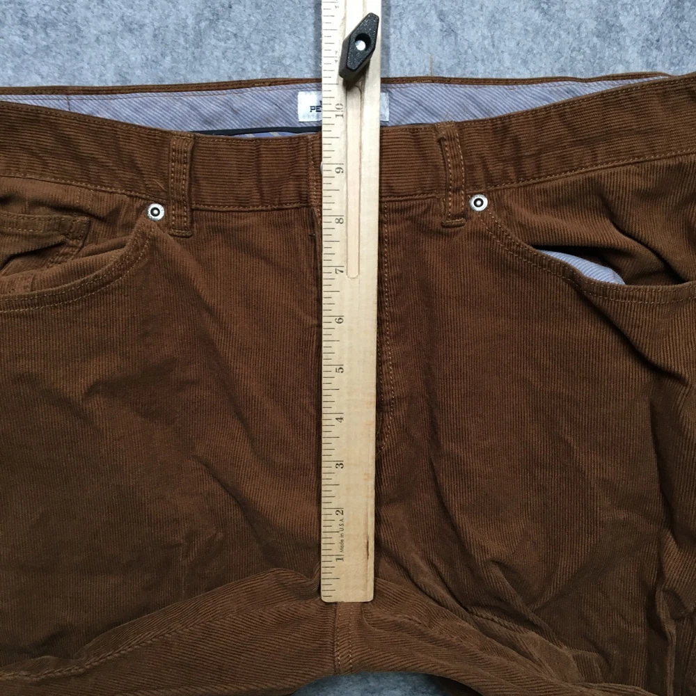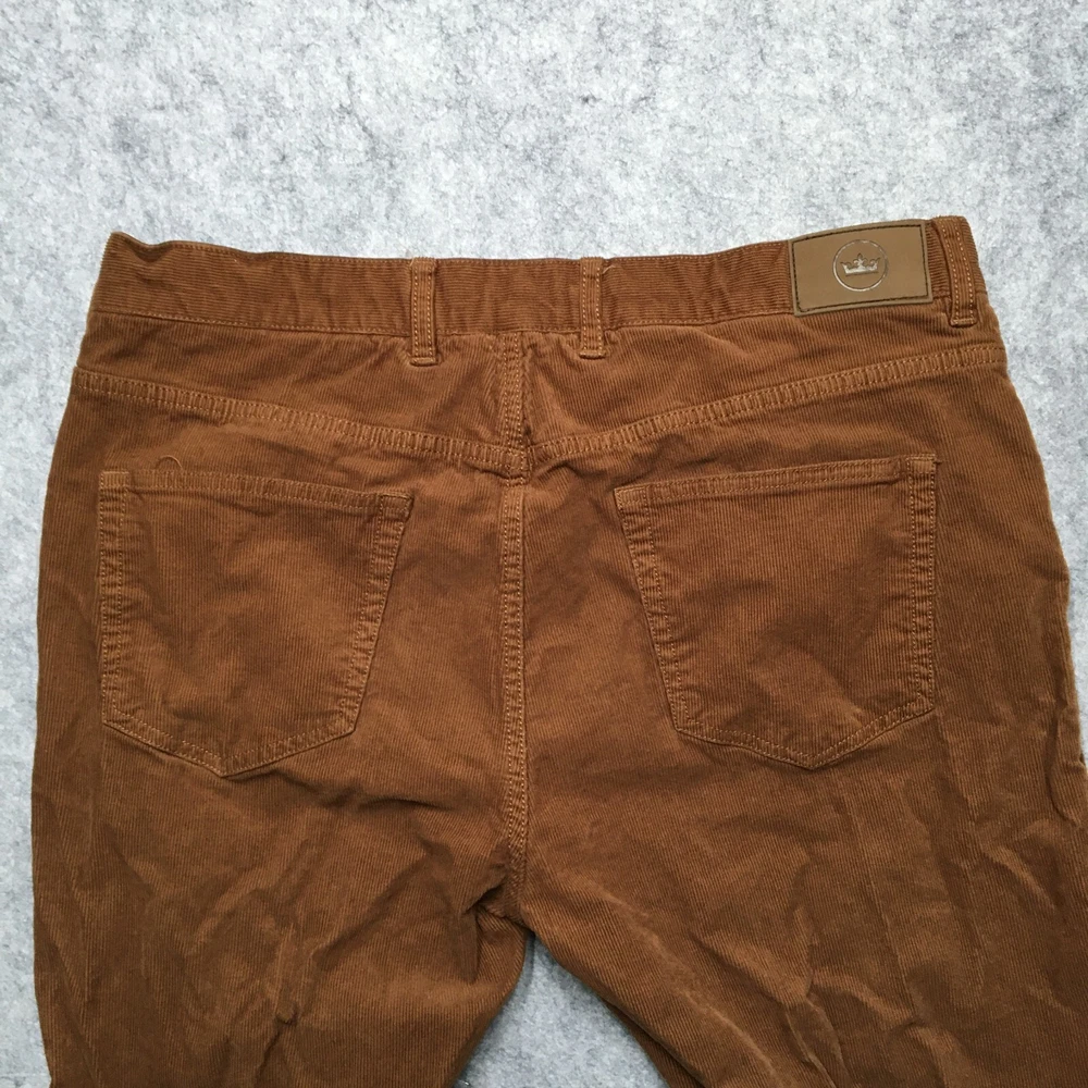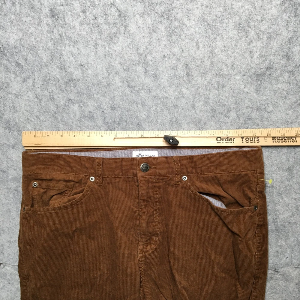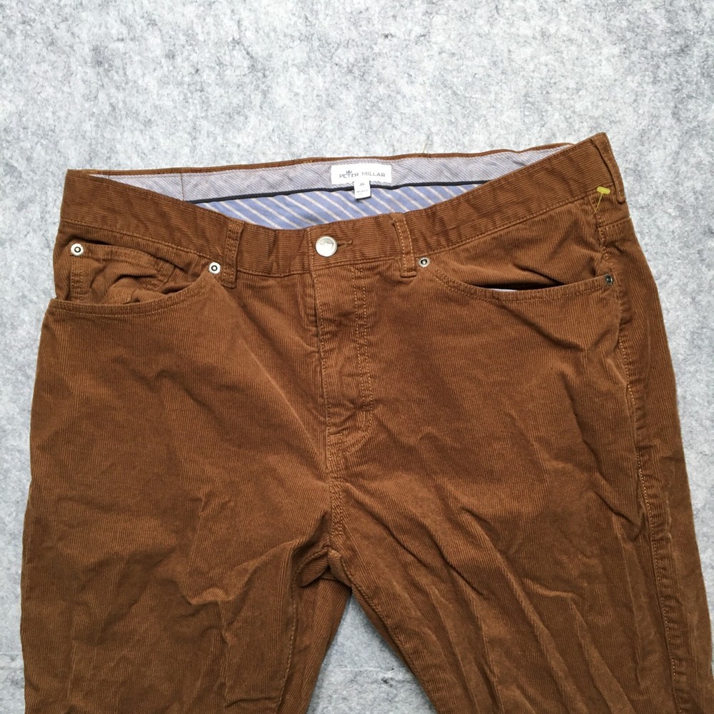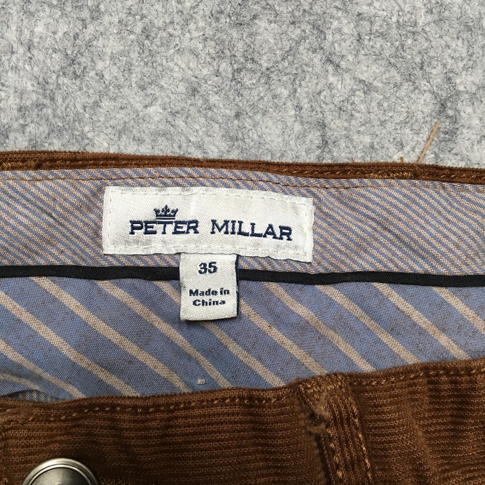 Leg Style: Straight Department: Men Theme: Preppy Accents: Logo Front Type: Flat Front Features: Pockets Pattern: Solid Inseam: 32 in Occasion: Business, Casual, Travel Vintage: No Type: Pants Seller Notes: “Good Used Condition! No stains, rips, or holes. See photos for condition specifics and measurements.” Material: Polyester Style: Chino Fit: Regular Closure: Zip Size: 35 Color: Brown Brand: Peter Millar Size Type: Regular Waist Size: 35 in Fabric Type: Corduroy