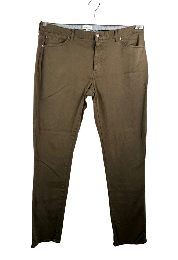 Good preowned condition Our lauded sateen five-pocket pants reimagined in an all-new fabrication that’s softer and more comfortable than previous designs. This style features the same ideal stretch and ease of movement as well as deep saturated color for a rich appearance. They sit slightly below the waist and offer a straight hip and thigh and a straight leg. Finished with classic five-pocket styling. Details & Fit Men's 72% cotton / 25% modal / 3% spandex pant Classic fit Peter Millar leather patch on back waistband Flat lay: waist 20" Rise 11" Inseam 32.5" Leg Opening 7.4" work wear, preppy, minimalist, money, comfy, stretchy, soft, dandy, effortless, minimalist, practical, 90s, Y2K, athleisure, muted, golf PLEASE check all flat lay measurements and listings carefully BEFORE PURCHASE!I put in a lot of work into hand measuring and researching each items as best as I can! Thank you so much for your consideration! Please note that: RETURN SHIP FEE IS PAID BY THE BUYER! If you are not too familiar with flat lay measurements, I recommend taking a measurement of your own clothes that you feel comfortable and compare with the measurement I provide. For returns: The items MUST BE IN SAME CONDITION AS SOLD for full refund! We all don't like returns and let's work together to minimize! Please note that RETURNS ARE NOT ACCEPTED FOR NEW WITH TAG OR NEW WITHOUT TAG ITEMS!