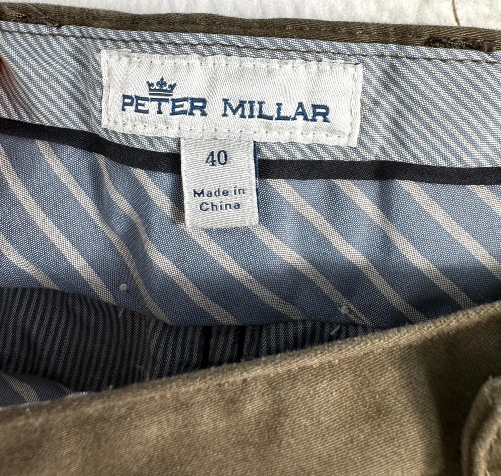 Vintage: No Department: Men Handmade: No Leg Style: Straight Theme: 90s, Preppy, work wear, dandy, minimalist Closure: Button, Zip Pocket Type: 5-Pocket Design Accents: Button, Logo, Zipper Garment Care: Machine Washable Personalize: No Inseam: 32 in Waist Size: 40 in Type: Pants Occasion: Casual, Party/Cocktail, Travel, Wedding, Workwear Pattern: Solid Features: Breathable, Comfort, Pockets, Stretch Material: Cotton Blend Color: Brown Brand: Peter Millar Front Type: Flat Front Seller Notes: “good” Size: 40 Fabric Type: Satin Rise: Mid (10-12 in) Fit: Regular Style: Chino Season: Fall, Spring, Summer, Winter Size Type: Regular