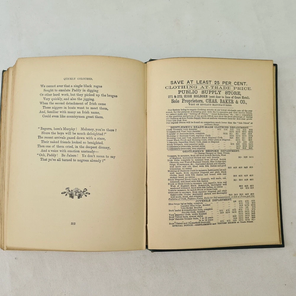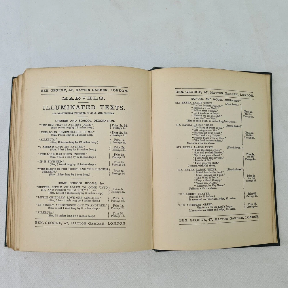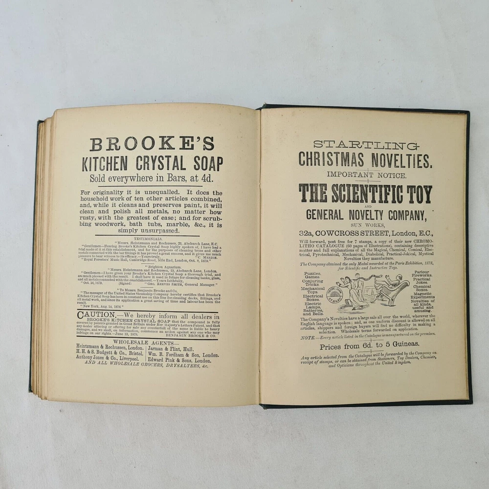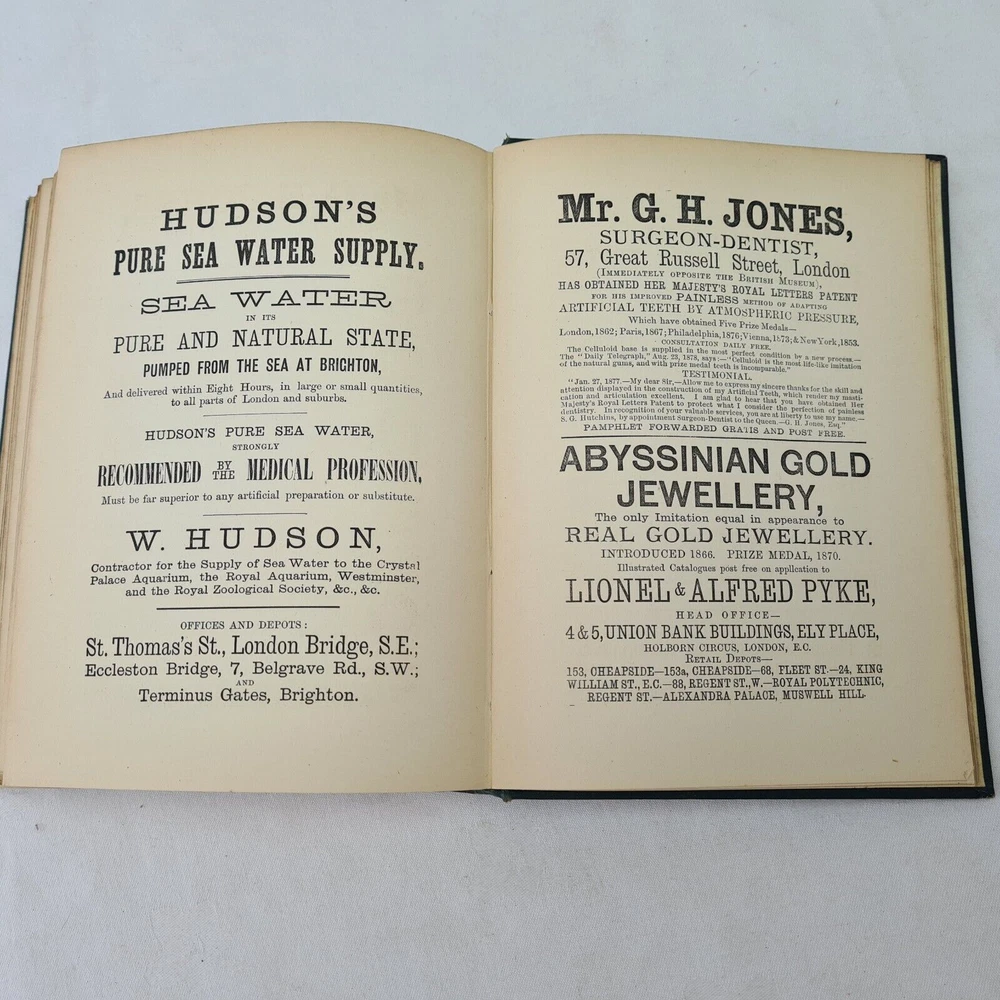 Undated Peter Parley Tales printed in London by Ben George. Includes several pages advertisments. Hardback in dark green, embossed with black ink and guilding. There is some separation to the first section as photographed, Otherwise Very Good Listing and template services provided by inkFrog