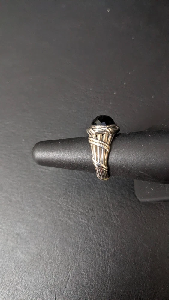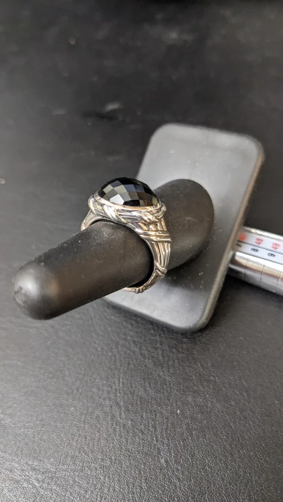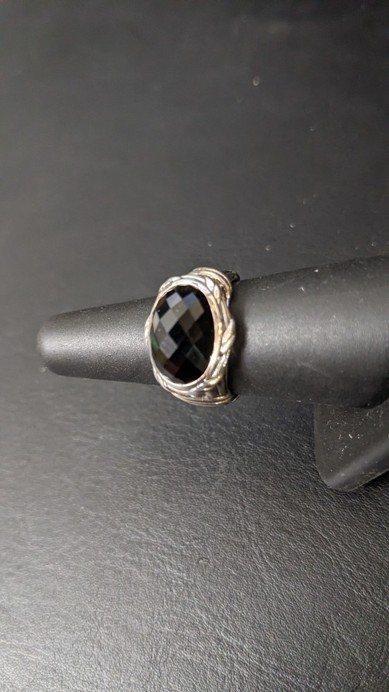 Sterling silver, oxidized Ring # 7 14x10mm east-west oval faceted Onyx Measures approximately 9/16"L x 3/4"W