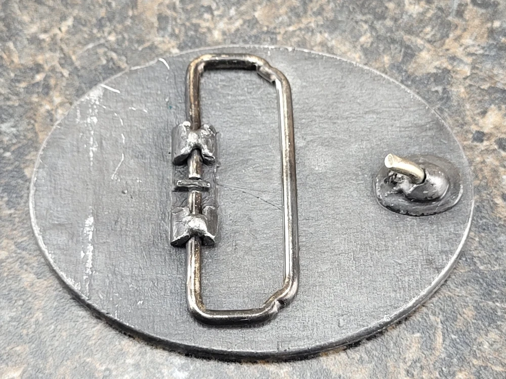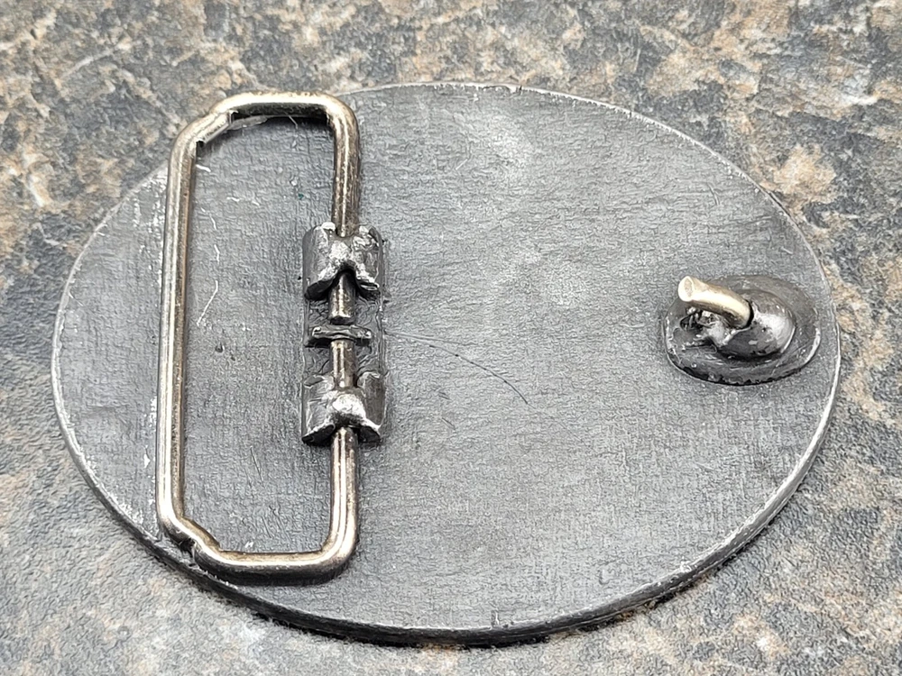 This belt buckle is approximately 7.5 cm x 5.5 cm.