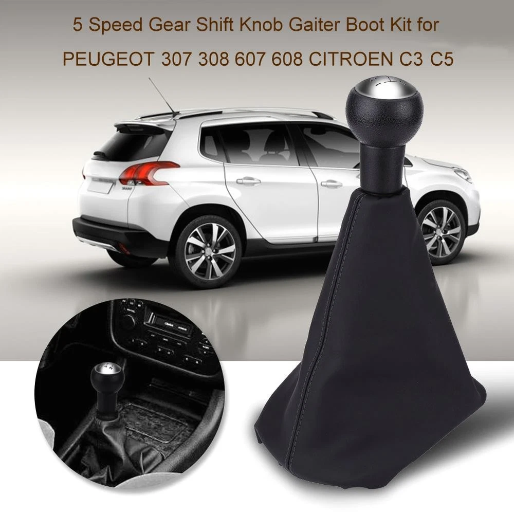 Featrues: 1、Brand new 5 speed gear knob and gaiter full kit 2、High quality PU leather and plastic material, comfortable operation feeling and durable in use 3、Directly fit in, easy to install. Give your gear knob a brand new look 4、A perfect replacement for your old or damaged one 5、Suitable for PEUGEOT 307 308 607 608 CITROEN C3 C5 Specification: Features: Brand new 5 speed gear knob and gaiter full kit. High quality PU leather and plastic material, comfortable operation feeling and durable in use. Directly fit in, easy to install. Give your gear knob a brand new look. A perfect replacement for your old or damaged one. Suitable for PEUGEOT 307 308 607 608 CITROEN C3 C5. Specifications: Material: PU Leather + Plastic Color: Black Type: 5 Speed Size: 15 x 14.5 x 26cm/5.9" x 5.7" x 10.2" Package Weight: approx. 252g Fitment: for PEUGEOT 307 308 607 608 CITROEN C3 C5 Package Included: 1 x Gear Shift Knob Gaiter Kit