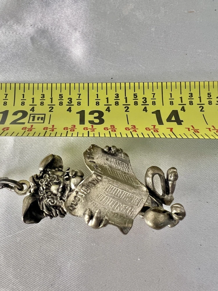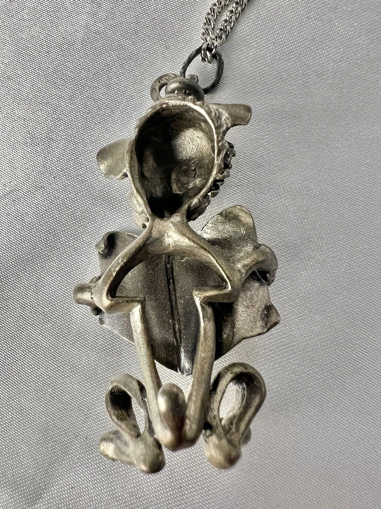 This vintage necklace features an adorable pewter poodle reading a newspaper. The pendant hangs from a delicate chain and is a perfect accessory for any dog lover. The piece has a distinctive style and can be worn on any occasion. The brand of the necklace is unbranded and it falls under the category of jewelry and watches. The necklace is pre-owned but remains in excellent condition. It is a unique and eye-catching piece that will undoubtedly attract attention. The pendant is perfect for those who appreciate vintage and antique jewelry, and it will make an excellent addition to any collection. A42