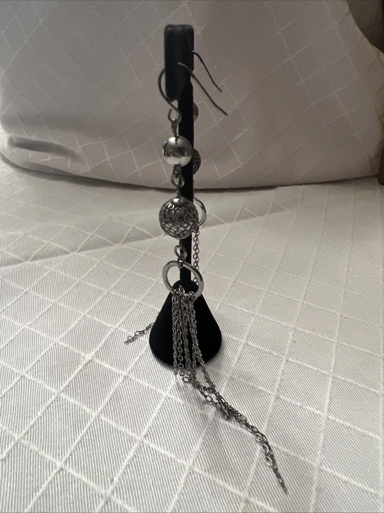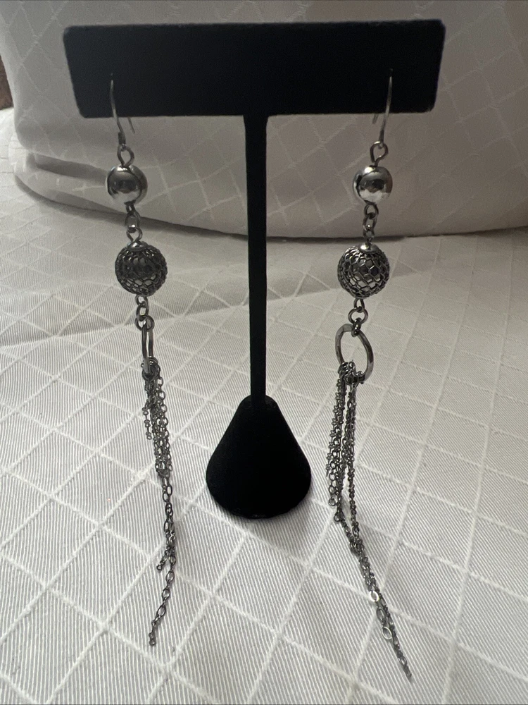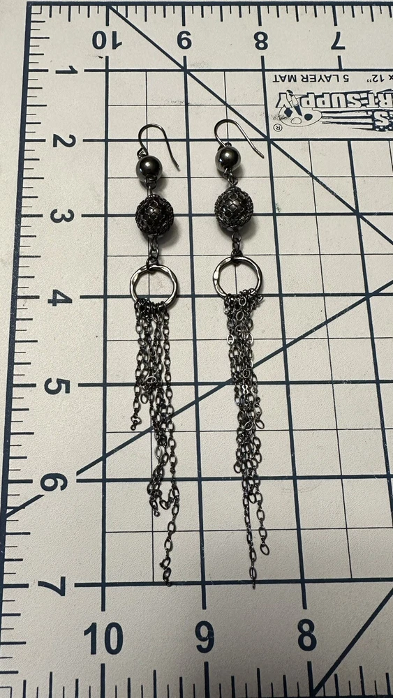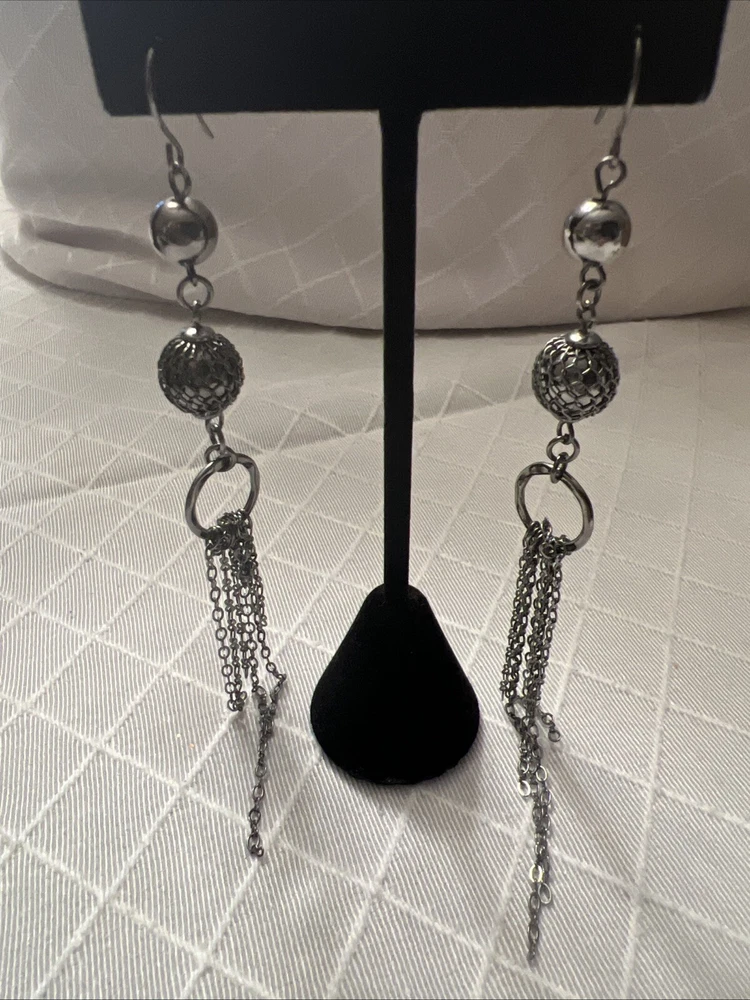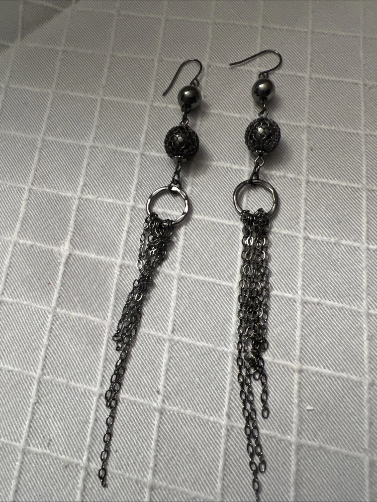 length: 4.75" long (including ear wire) UPC: Does not apply gtin13: Does not apply Material: metal Style: Drop/Dangle Brand: Unbranded Metal: Alloy Closure: Hook Color: dark Gray Type: Earrings Metal Purity: Not Applicable
