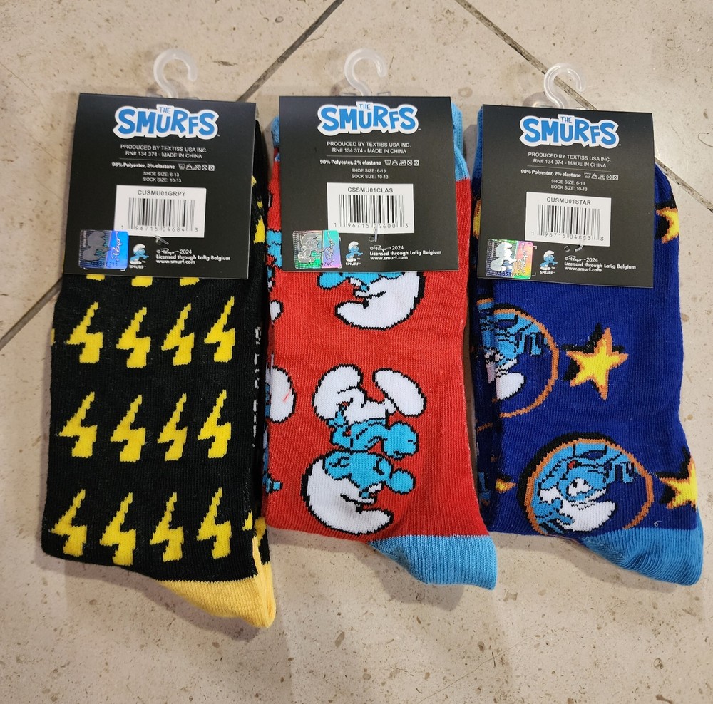 Peyo Smurfs Adult Crew Socks 3-Pack Fun Colorful Design