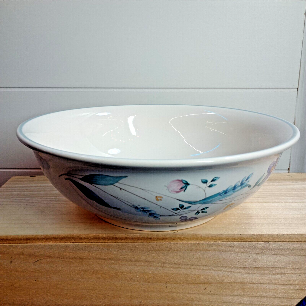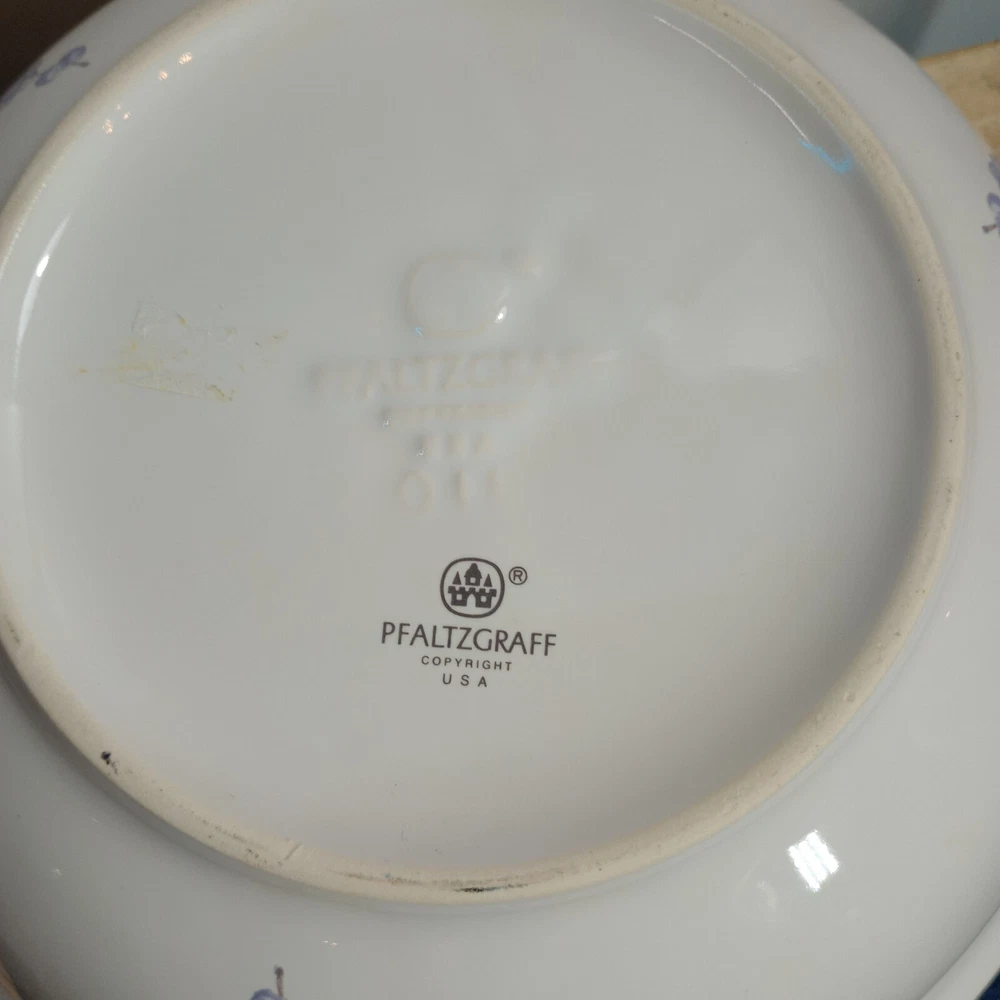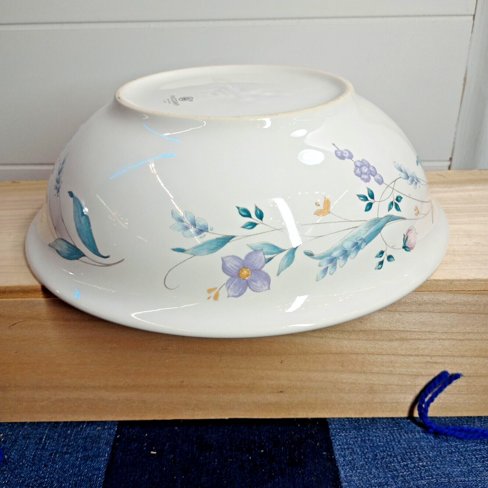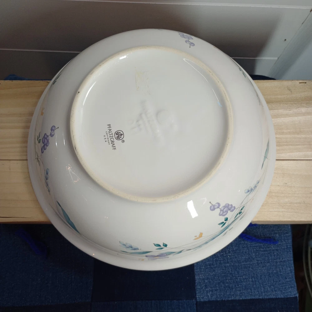 Crafted with care, the Pfaltzgraff April Serving Bowl is a blend of functionality and beauty, perfect for any occasion. The bowl features a charming floral pattern set against a glossy white background, making it a striking addition to your serving collection. At 8.5 inches in diameter and 2.75 inches in height, it's just the right size for a variety of dishes. This ceramic serving bowl comes from Pfaltzgraff's esteemed April product line, renowned for its art pottery production style. Made in the USA between 1990 and 1999, it showcases the craftsmanship of the late 20th century. The piece is an original, featuring the iconic impressed backstamp, and is produced with techniques that ensure its high quality. Whether used for a special dinner or as a decorative display piece, this bowl is sure to be treasured. Measures 8.5" in diameter, and approximately 3" in depth