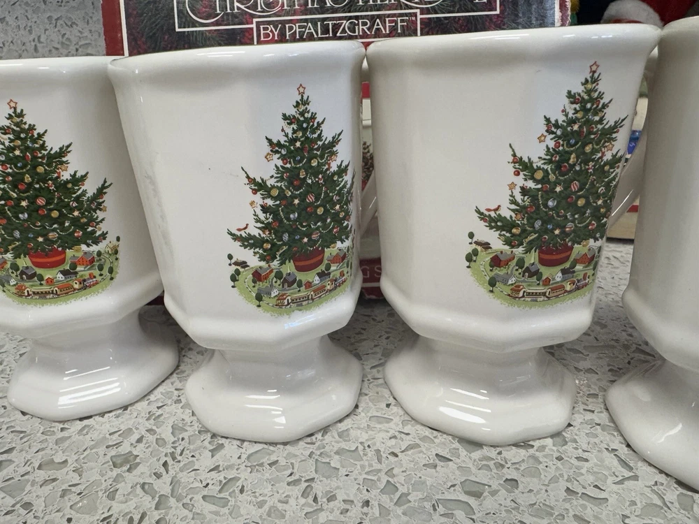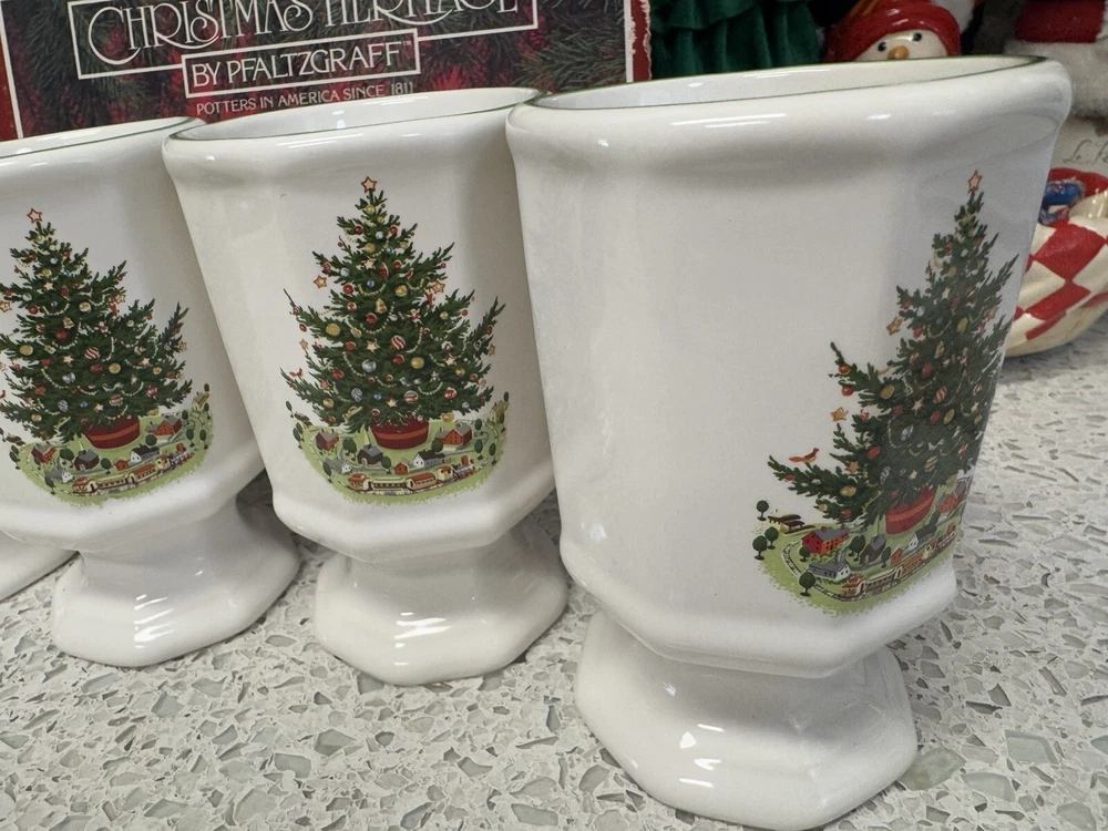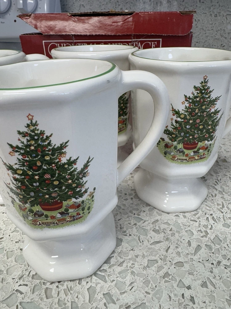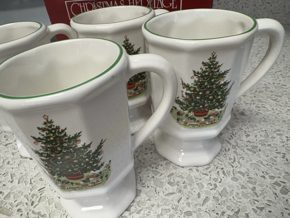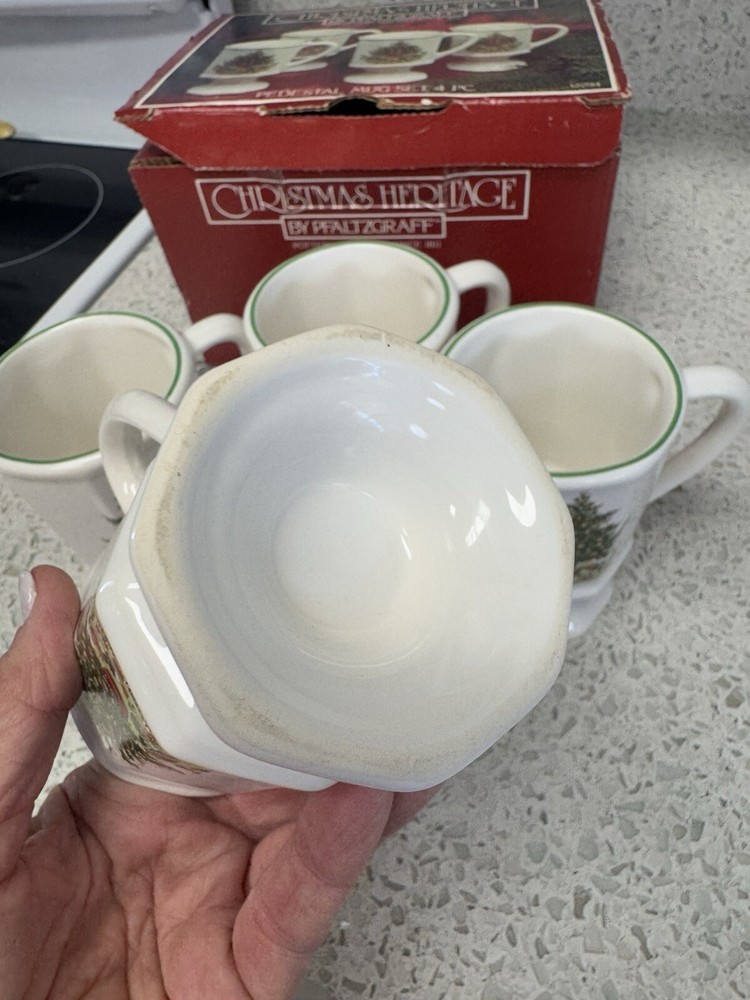 All four are excellent condition Celebrate the holiday season in style with this beautiful four-piece mug set from Pfaltzgraff's Christmas Heritage collection. Each mug stands at 5 inches tall and features a festive multi-color design that is perfect for any holiday occasion. Crafted from vintage original materials, these mugs are both durable and stylish. They are easy to clean and care for, making them a great addition to any kitchen or dining room. Whether you're enjoying your morning coffee or hosting a holiday party, these mugs are sure to impress. Add them to your collection today! Please see all photos Smoke Free Home Always happy to combine for shipping savings I also have three additonal of this pattern listed for individual purchase if you need more than four