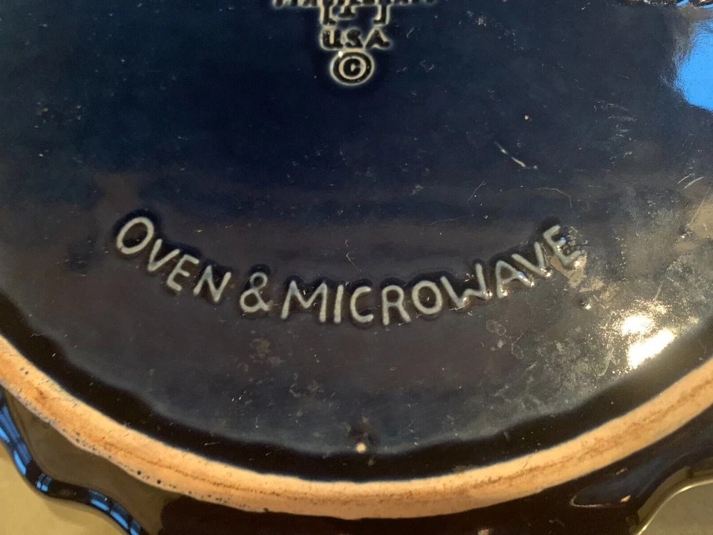 Gorgeous vivid cobalt blue! Offered is a 9" glossy finish quiche/pie/baking dish with crimped edges interior and exterior. This dish is in excellent condition. Please note in the last two photos the process of artisan pottery produces natural ceramic markings, drips. Measures 9" diameter x 2" deep. Fast shipping, quality packed, smoke-free household, trackable. Thanks for looking :)