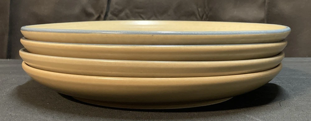 This set of four tan Pfaltzgraff stoneware dinner plates each measure 10 inches in diameter and feature a beautiful floral pattern in blue. The set is pre-owned and comes in good, clean condition. Please see pictures for details. If you have any questions or concerns, please do not hesitate to contact us. Check out our other items and message us if interested in more than one listing as combining items could save you money on shipping. RETURNS & REFUNDS Please inspect your item as soon as it arrives. We stand by the quality of the items we sell and will issue a full refund, including shipping charges, on any defective item that is returned. Please note: photos of the item, packaging, serial numbers and/or product identifiers may be required in order to guarantee a full refund. Returns are accepted on non-defective items; however, shipping charges may be withheld from your refund.