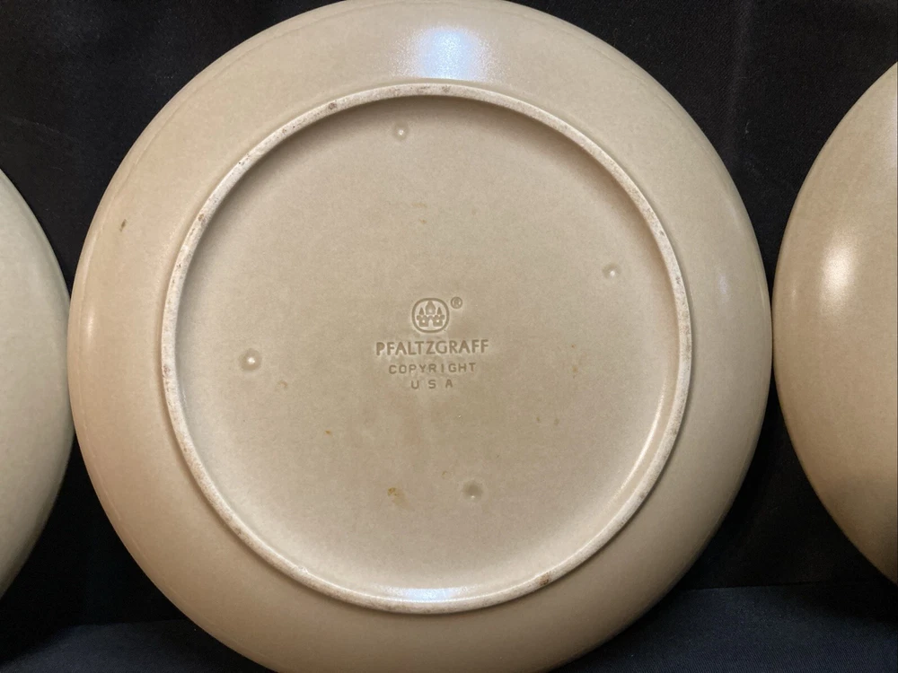 This set of four tan Pfaltzgraff stoneware dinner plates each measure 10 inches in diameter and feature a beautiful floral pattern in blue. The set is pre-owned and comes in good, clean condition. Please see pictures for details. If you have any questions or concerns, please do not hesitate to contact us. Check out our other items and message us if interested in more than one listing as combining items could save you money on shipping. RETURNS & REFUNDS Please inspect your item as soon as it arrives. We stand by the quality of the items we sell and will issue a full refund, including shipping charges, on any defective item that is returned. Please note: photos of the item, packaging, serial numbers and/or product identifiers may be required in order to guarantee a full refund. Returns are accepted on non-defective items; however, shipping charges may be withheld from your refund.