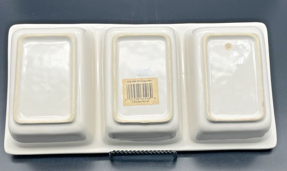 Pfaltzgraff GRAPEVINE 3 Section Serving Tray Platter ~14" X 7". A lovely piece perfect for gatherings. There is one, very small, nick in the glaze. This has been shown in the photos. Do you see more than one item that you want? I can combine shipping. Once you have clicked the “Buy It Now” option, request an invoice BEFORE you pay for your items. I am always on the lookout for vintage and sought after items. Please check out my sellers page for other great products!