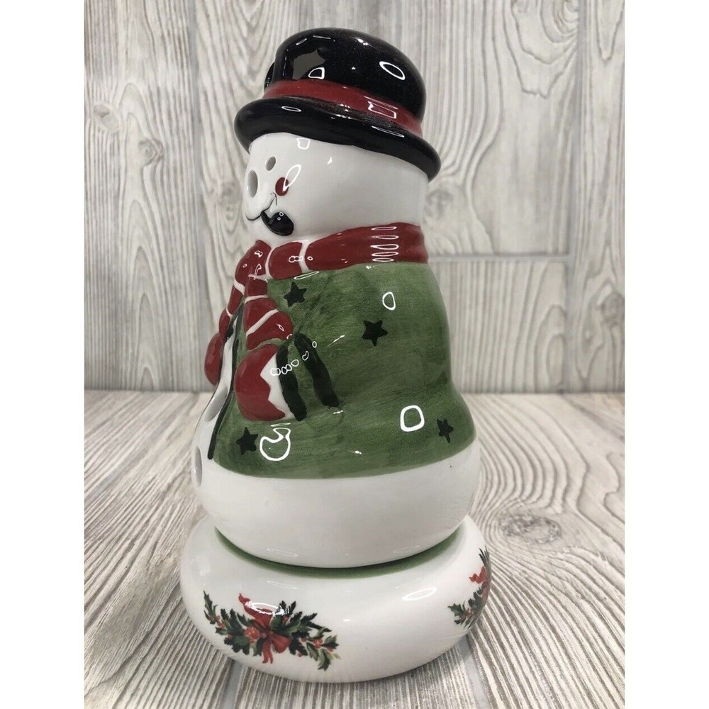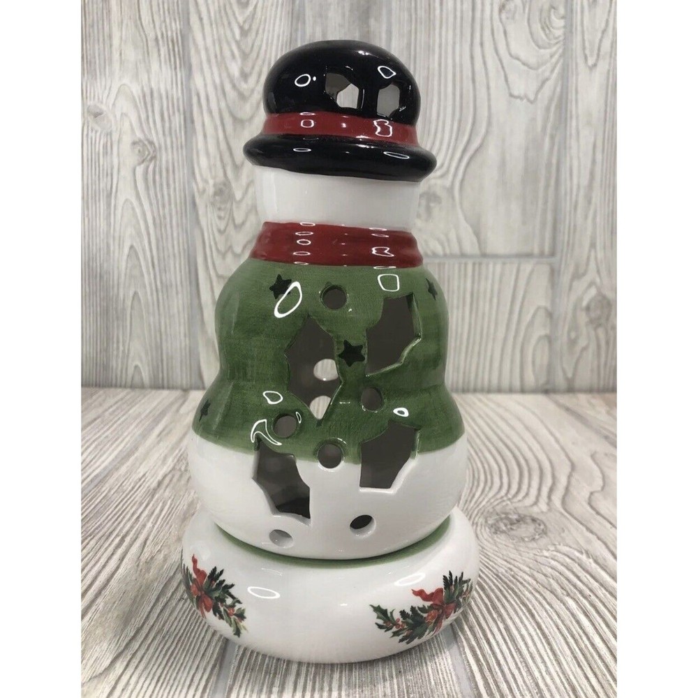 Pfaltzgraff Heritage Snowman Candle Holder Tea Light Xmas NOS Original Box