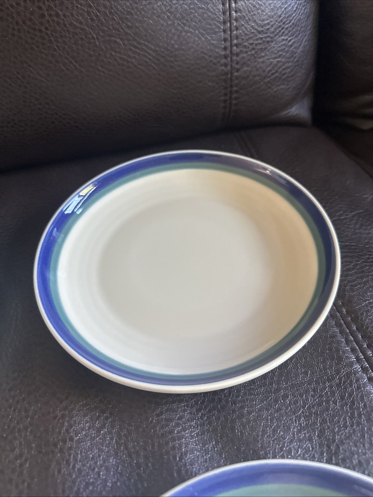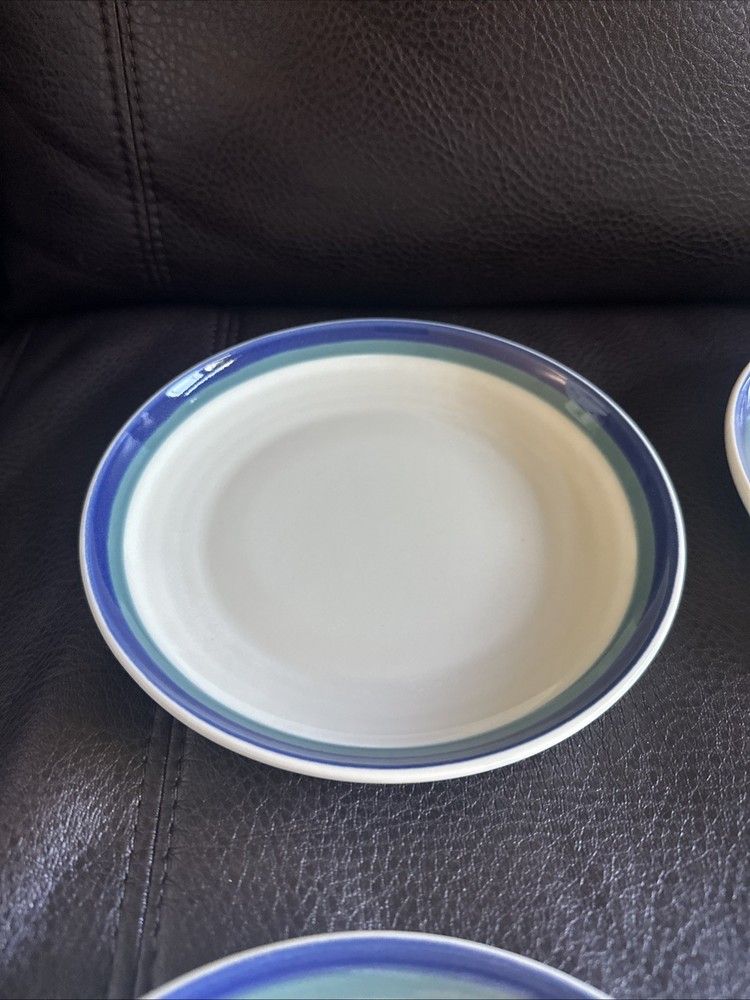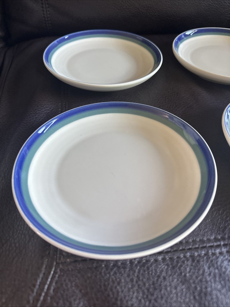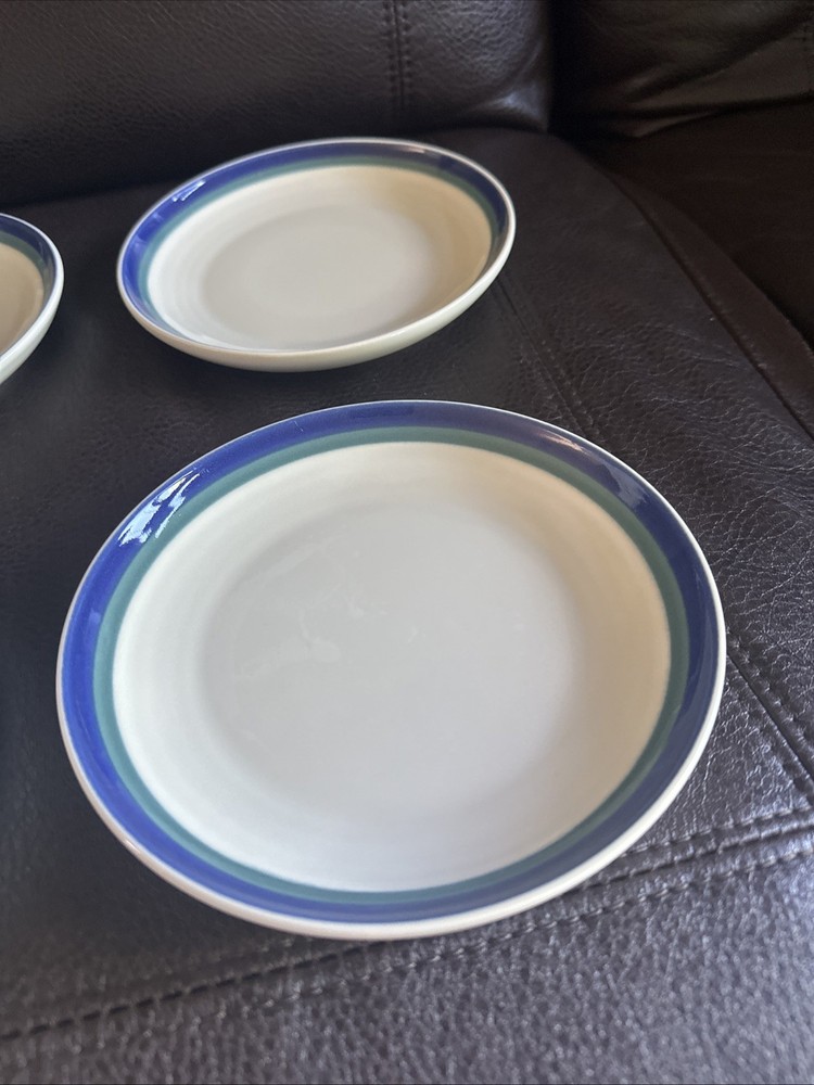 Add a touch of vintage charm to your dinnerware collection with this set of four Pfaltzgraff "Northwinds" bread and dessert plates. Each plate measures 6.75 inches in diameter and features a beautiful multi-color pattern that is sure to complement any table setting. Made from high-quality stoneware, these plates are durable and perfect for everyday use. The Pfaltzgraff brand is well-known for its high-quality pottery and glassware, and these plates are no exception. Whether you're serving up fresh bread or delicious desserts, these plates are sure to impress your guests. Ideal for collectors of vintage dinnerware, these plates are sure to become a cherished addition to your collection. Good used condition, no chips or cracks!