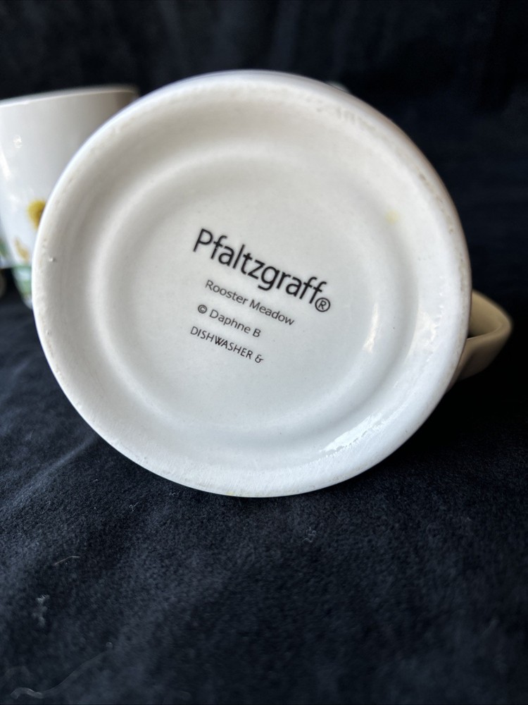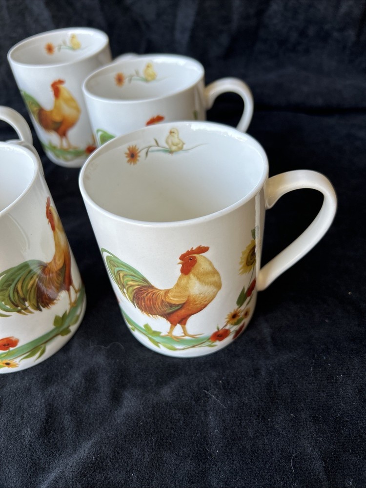 The Pfaltzgraff Rooster Meadow Coffee Mugs are a charming addition to any kitchen or dining area. These round ceramic mugs feature a multicolor design with a rooster and meadow theme, perfect for all occasions. The set includes six coffee mugs, each dishwasher safe for easy cleaning. Made by the brand Pfaltzgraff in China, these mugs are a delightful way to enjoy your favorite hot beverages with a touch of animal-themed whimsy. No chips