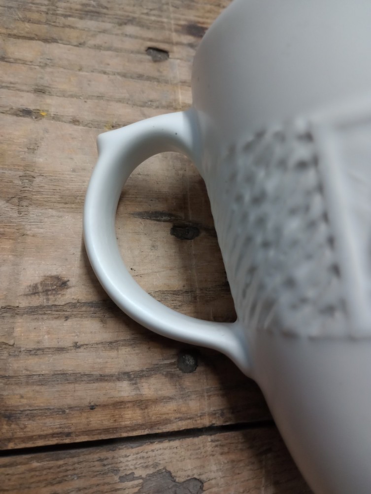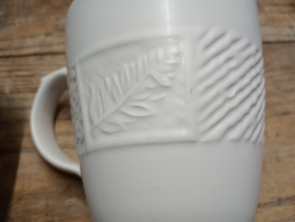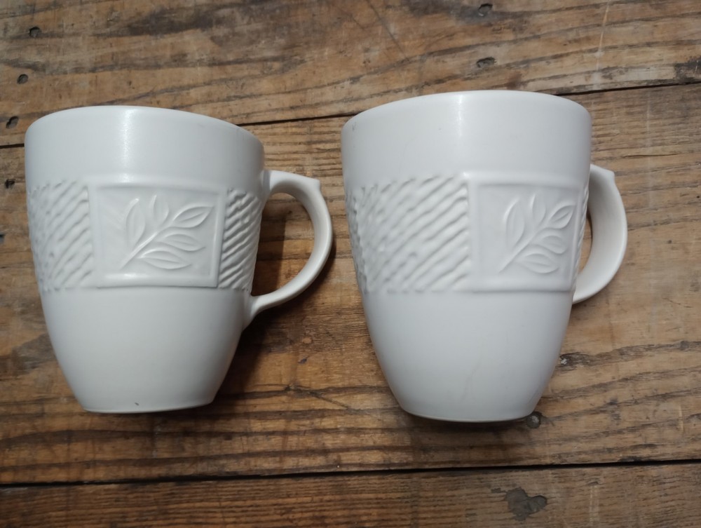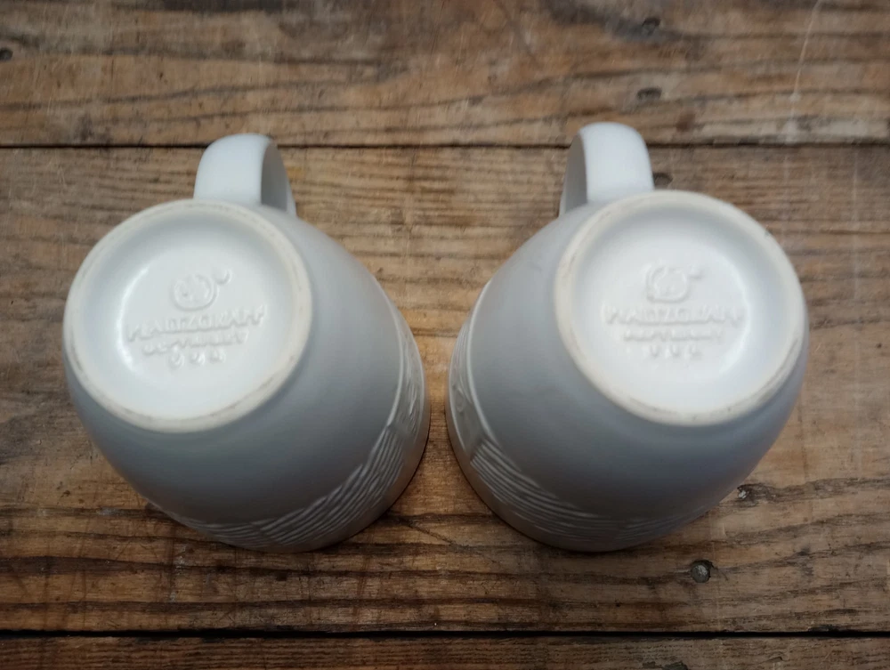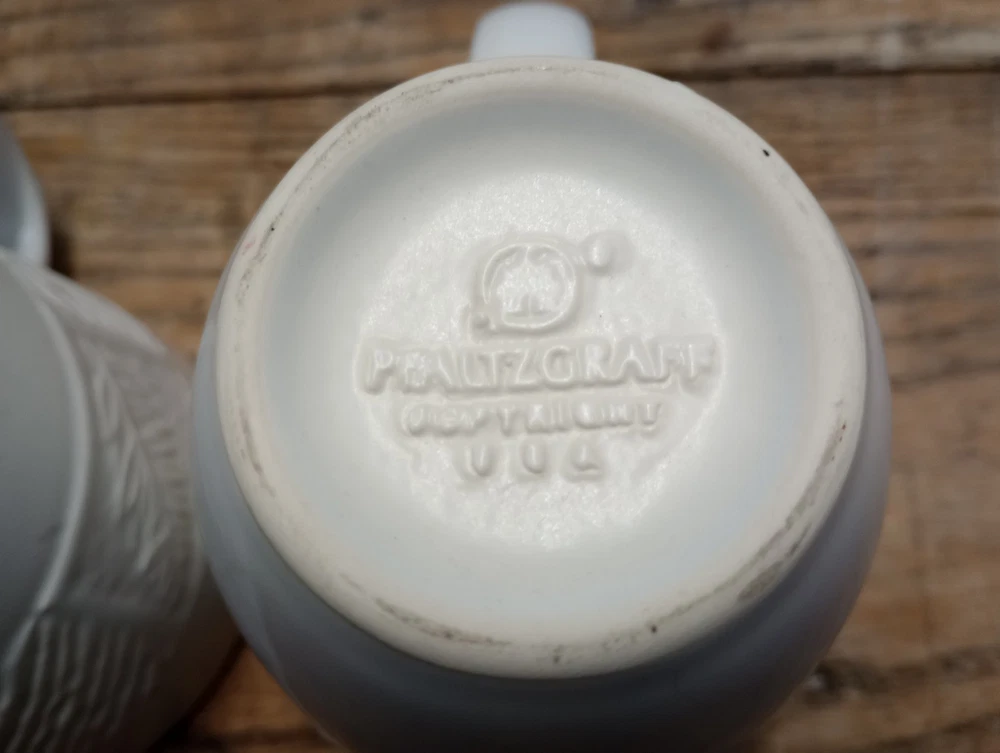 Enjoy your favorite hot beverage with this vintage Pfaltzgraff Sierra mug. Made in the USA, this large 18oz mug features a beautiful botanical pattern that is perfect for any occasion. The off white color and impressed backstamp add to the mug's charm, making it a great addition to any collection. Crafted by Pfaltzgraff, this original Sierra mug has a capacity of 18 oz and measures 4 1/2" x 4 1/2" x 4" wide.inches. It is an ideal piece for all occasions, whether it's for your morning coffee or evening tea. Get your hands on this unique vintage set of 2 mugs today!