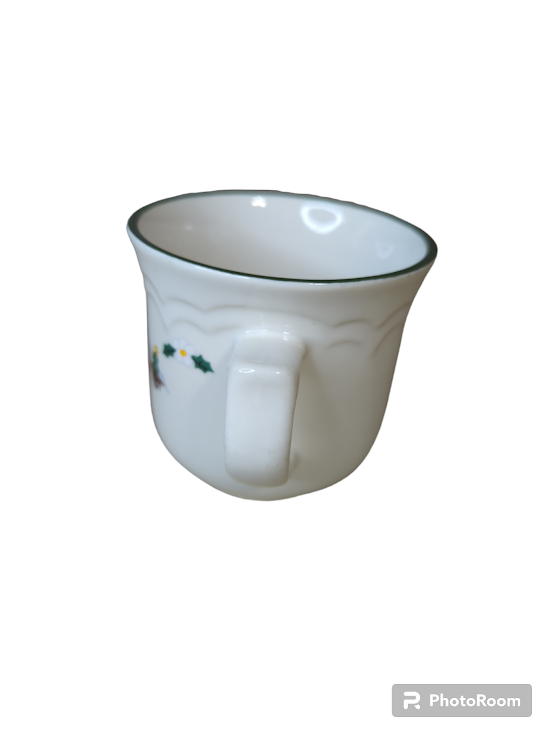 Pfaltzgraff SNOW VILLAGE Christmas Mug Coffee Tea Cup Stoneware Barn Cow Angel Measures approximately 3.25" h and 3.5" diameter Good Condition - No Chips or Cracks