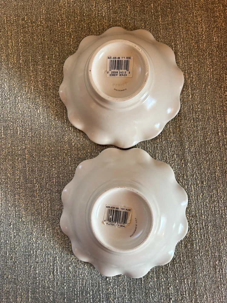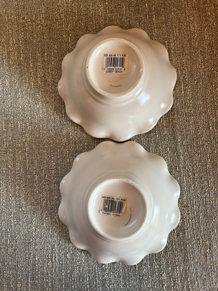 Pfaltzgraff Tea Rose Fluted Scalloped Pedestal Cereal Bowls 7 Inches Set Of 2. Condition is Used. Shipped with USPS Priority Mail. One bowl has a small chip showing in the pictures