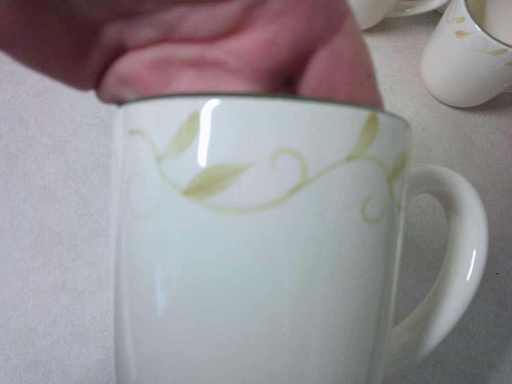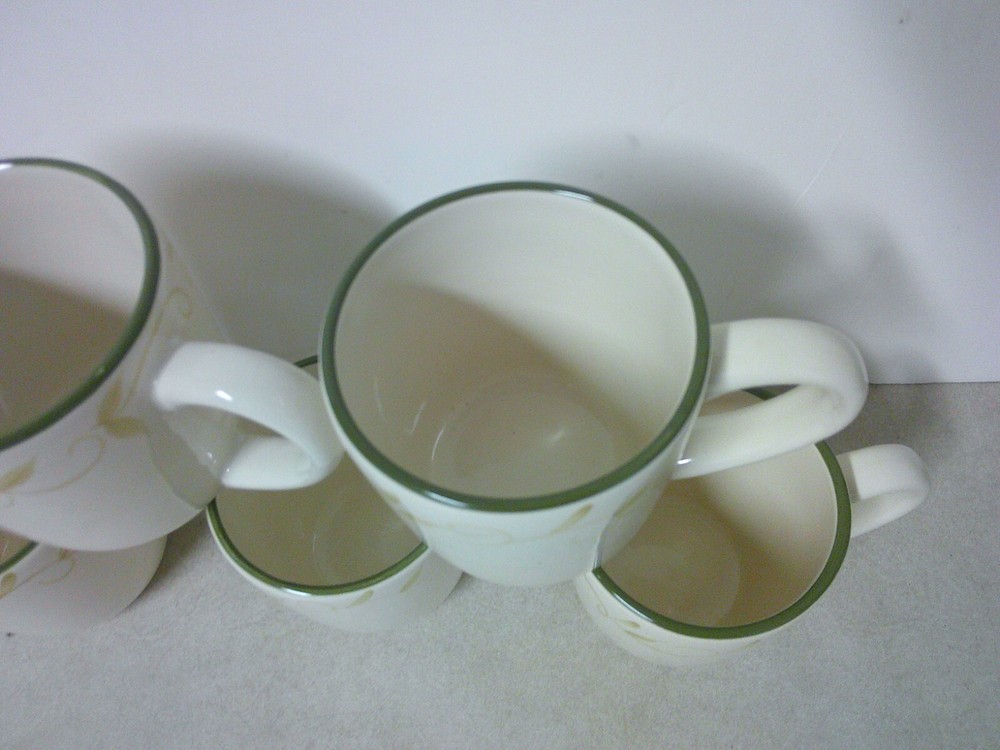 x4 Pfaltzgraff Traditions Sefton Park Green Trim Leaf & Vine Ceramic Coffee Mugs