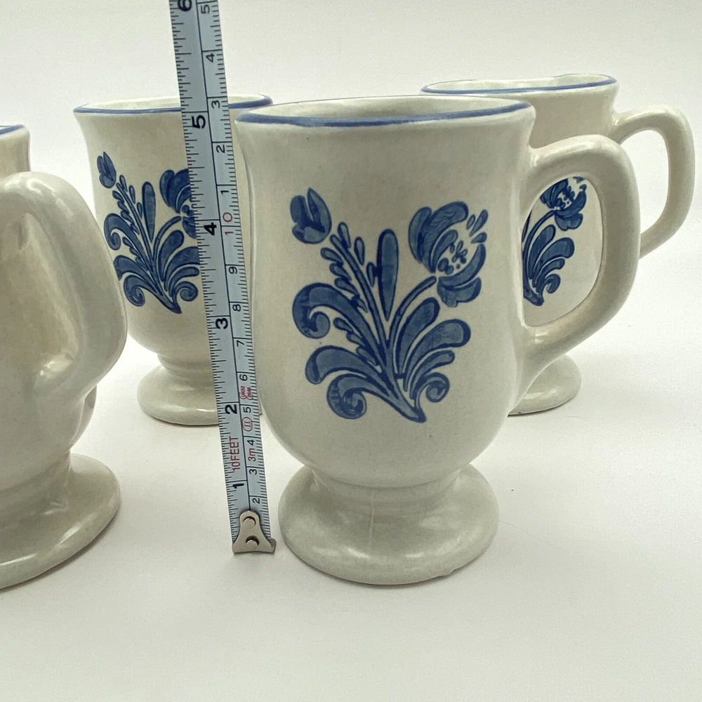 Pfaltzgraff Yorktowne Footed Pedestal Mugs Coffee Cups 5" Stoneware Set of 4 Vtg Set of 4 pedestal footed mugs in very good vintage condition. Light minor scratches from use. One bottom edge has a glaze chip. No crazing detected. See photos for dimensions and details. Ships by USPS Ground Advantage.