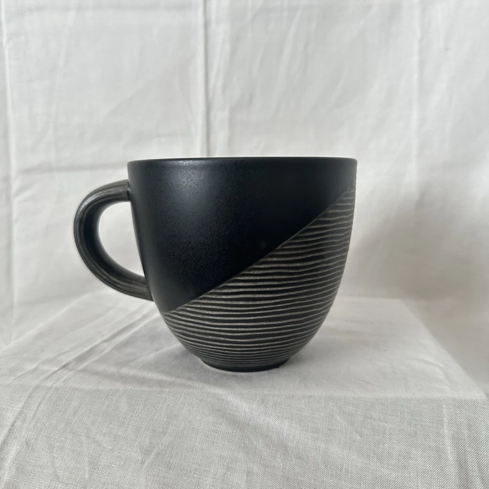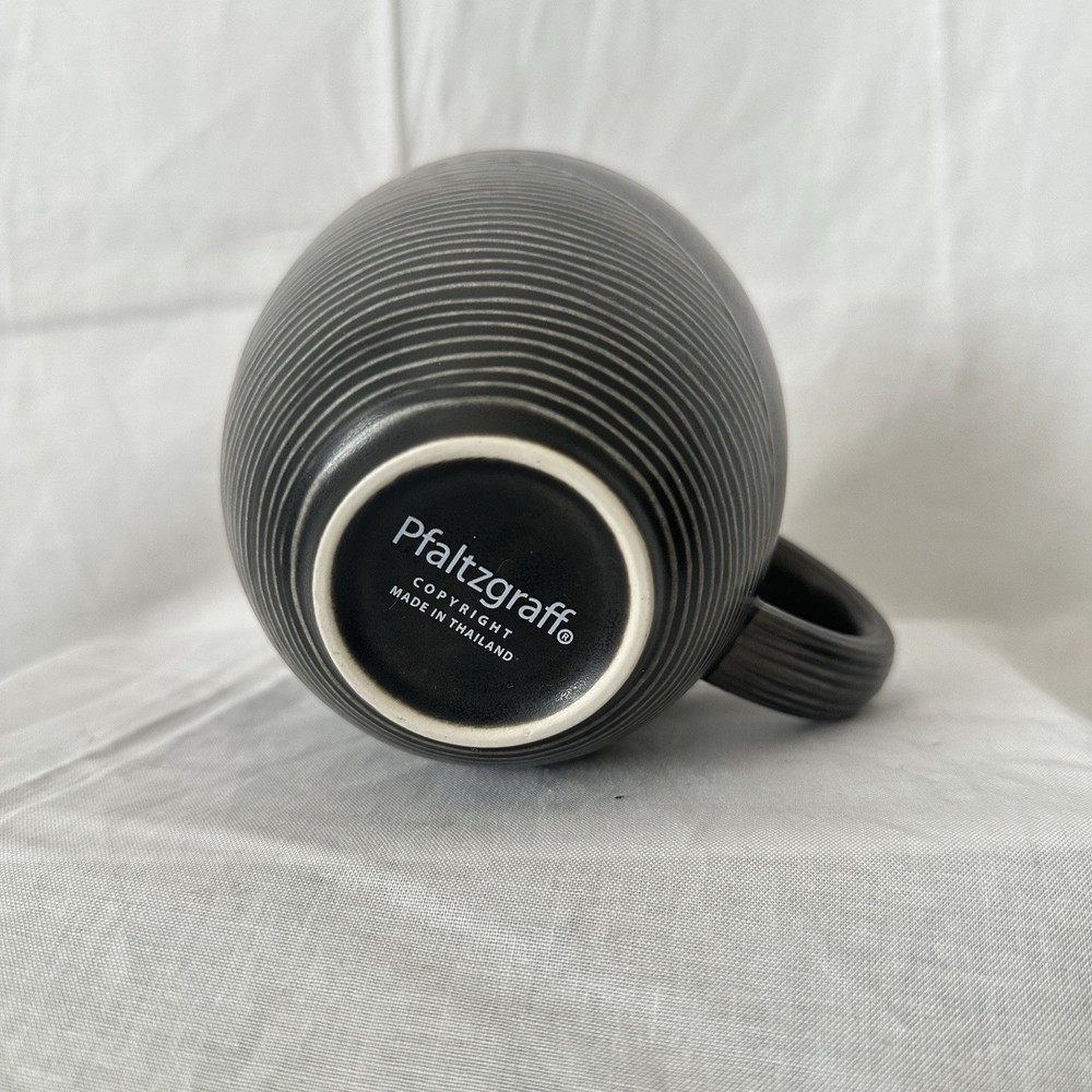The Pfaltzgraff Retired Night Surf Pattern 18oz. Single Coffee Mugs are a black coffee mugs from the Night Surf product line. Made in Thailand, these decorative cookware pieces are perfect for serving coffee in style. The mugs are not signed and are not handmade, making them a convenient and elegant addition to any kitchen or dining area.