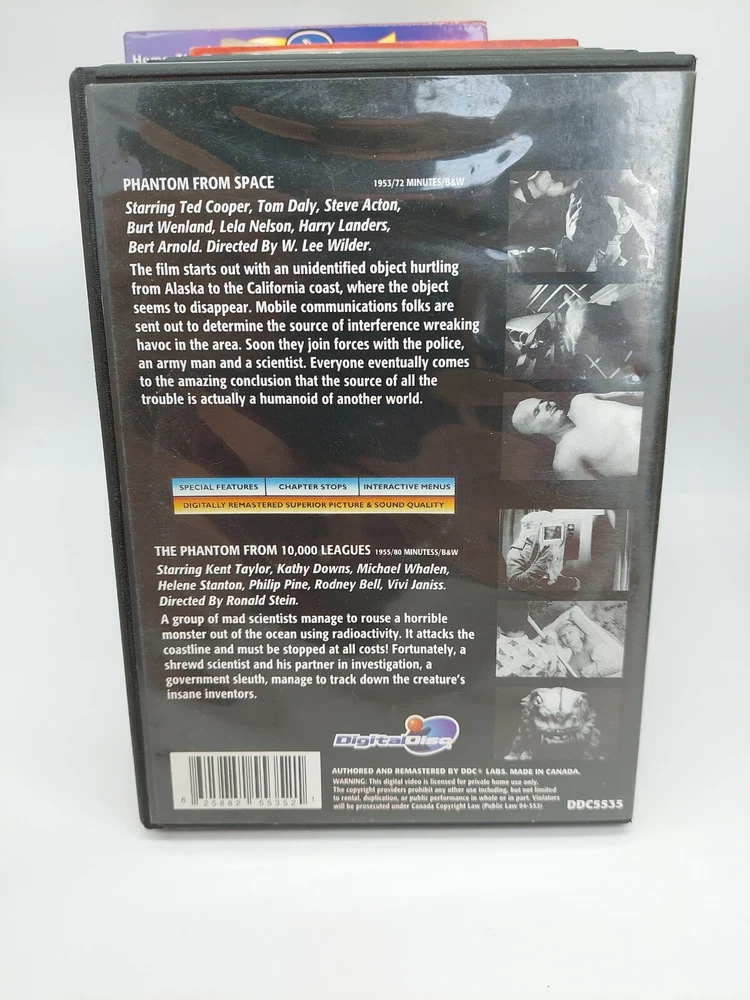 Case Type:Tall/DVD CaseFeatures:Black & WhiteEstado del artículo:BuenoMovie/TV Title:Phantom From Space / The Phantom From 10,000 LeaguRelease Year:1953, 1955UPC:625882553521Language:Englishgtin13:625882553521Format:DVD