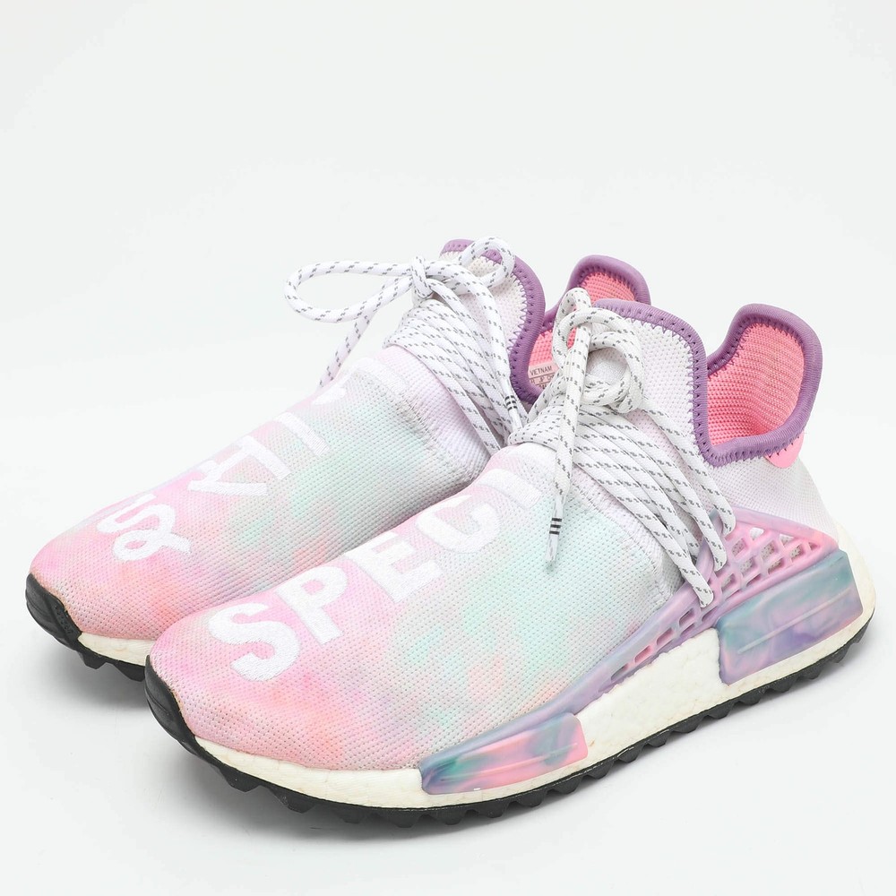 Our eBay Store About Us Contact Us Add to Favorite Sellers Pharrell Williams x Adidas Multicolor Knit Fabric Hu NMD Low Top Sneakers Size Experience vibrant style with Pharrell Williams x Adidas Hu NMD sneakers. These low-top kicks feature a multicolor knit fabric that ensures both comfort and eye-catching appeal. With signature detailing and a snug fit, they offer a bold and dynamic addition to any collection. Ideal for those who appreciate creativity and innovation in footwear. Product Details Brand Pharrell Williams Color Multicolor Includes The Luxury Closet Packaging, Extra Lace Outsole Length 29 cm Outsole Width 10 cm Size US 6.5 (EU 39 1/3 /UK 6) Certified by The Luxury Closet This item has gone through a detailed authentication process overseen by our experts. We offer a lifetime guarantee of authenticity on all our items. How We Check The in-house team of experts at The Luxury Closet is highly trained to verify the authenticity and the condition of the luxury products. They ensure that only 100% authentic items are put on sale.The evaluation process is unique with its own mix of assessment criteria and differs according to the category. Each item is evaluated based on the following combination of hallmarks, hardware, stitching, symmetry, material, craftsmanship, stamping, codes, hologram stickers, and packaging. Our authenticators also check if the items have been modified or amended (e.g., aftermarket diamonds, replaced batteries, repaired bags, etc.) International Buyers Import duties, taxes and charges are not included in the item price. These charges are the buyers responsibility. Please check with your country’s customs office to determine what these additional cost will be prior to buying.