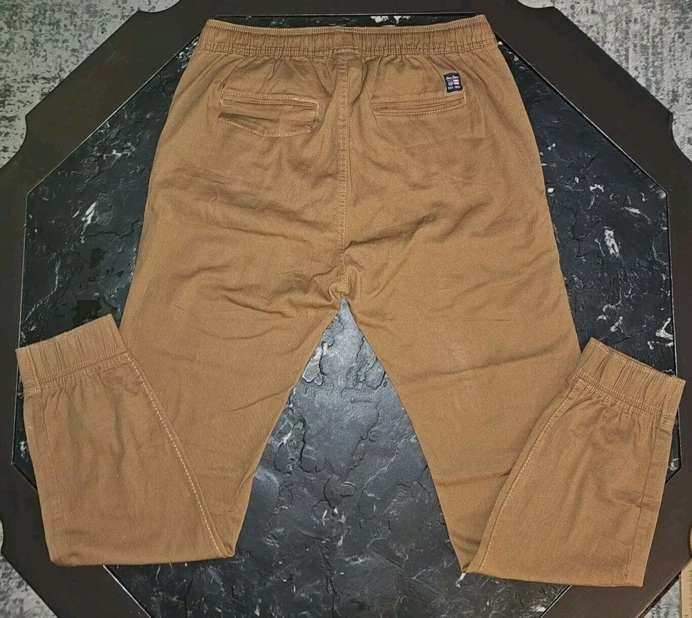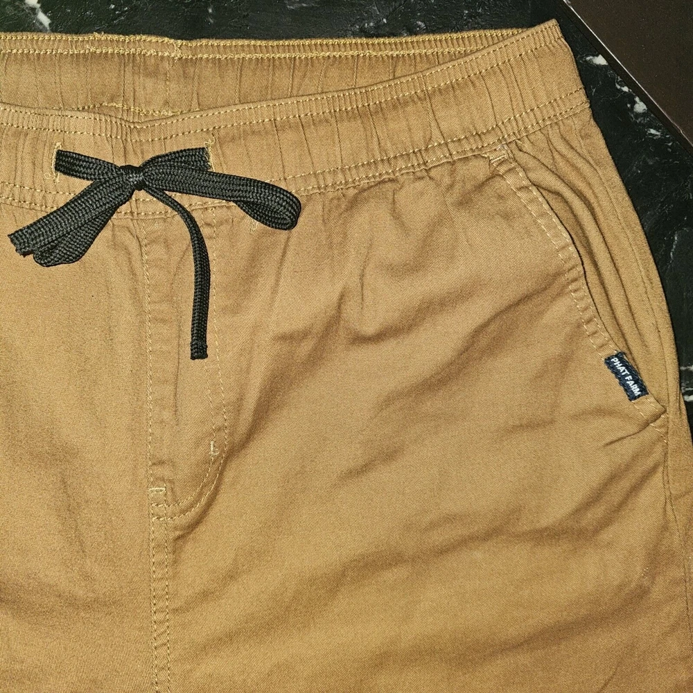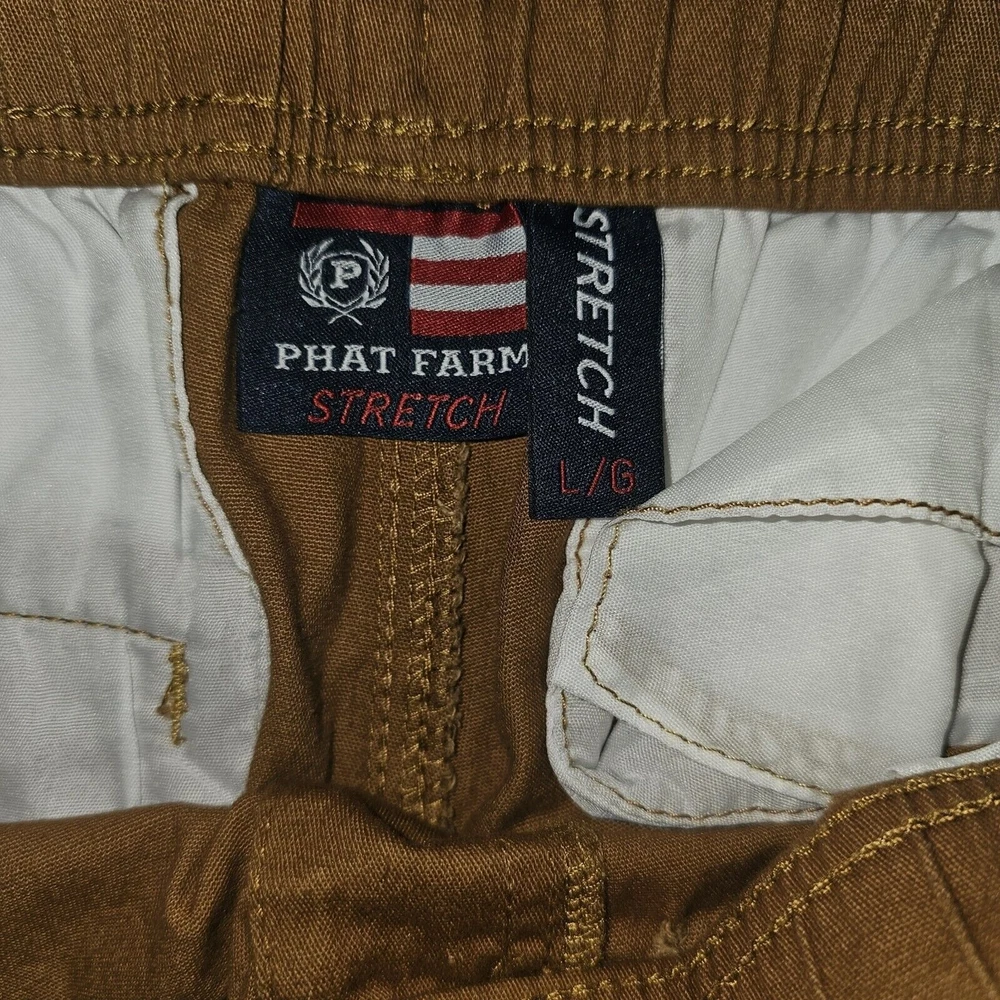 Phat Farm Stretch Jogger Pants Brown Tan Drawstring Sweats Y2K Vtg Youth size large Waist 32 unstretched, inseam 30 There is a small hole by waistband, check pics
