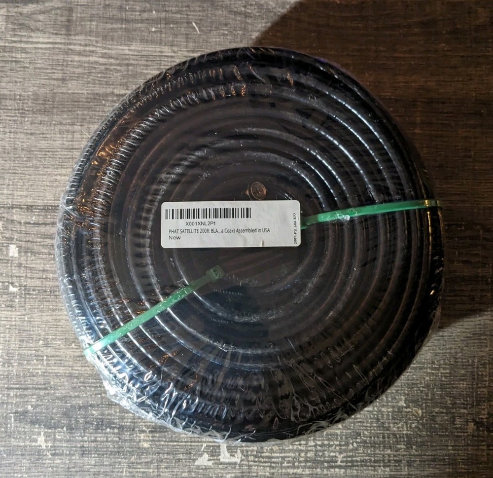 Indoor Outdoor TRIPLE Shield 75 Ohm Coax Cable for (CATV, Satellite TV, & Broadband/High Speed Internet) swept tested Cable Construction: 18AWG TRIPLE-SHIELD - Jacket: UV Resistant PVC - Braids: Aluminum Alloy Coverage - Foil Shields: Aluminum (100% Coverage) - Dielectric: Gas Injected Foam PE Connectors: Nickel-Plated Brass Constuction 21mm compression connectors Assembled in the USA by professionals at PHAT SATELLITE INTL 8 facilities across the USA