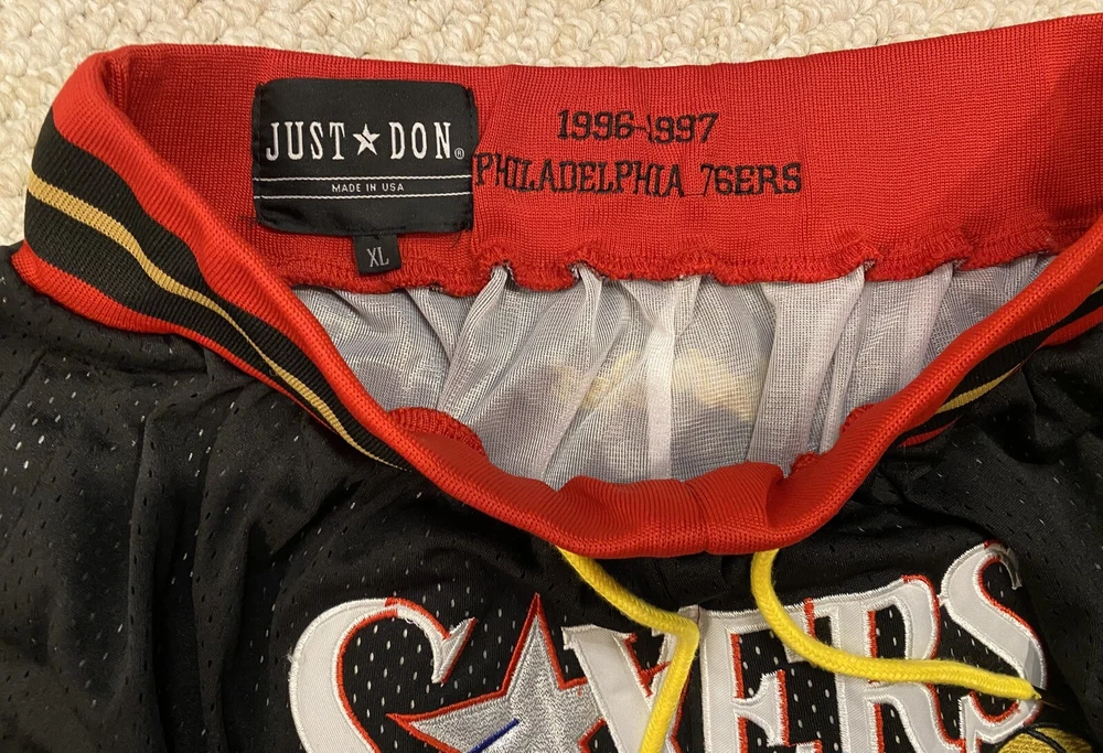 PHILADELPHIA 76ers JUST DON 1996-1997 SIXERS BASKETBALL SHORTS MESH LINED XL ELASTIC WAISTBAND WITH DRAWSTRING SHORTS STRETCH FROM ABOUT A 30 WAIST TO 38 INCHES GENUINE & AUTHENTIC *************************************************************** *We specialize in providing our Customers with High End, Brand Name Designer Clothing at an Affordable Cost....regardless of whether it's brand new or pre-owned. Our goal is for customer satisfaction!! If you have any questions or concerns feel free to reach out and contact us W30 All Pre-Owned Clothing is Properly Cleaned & Laundered as per ebay policy standard