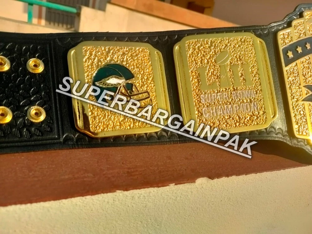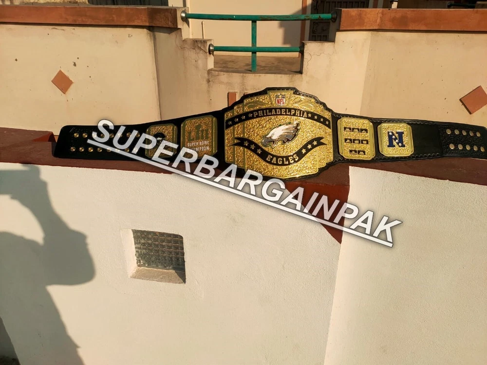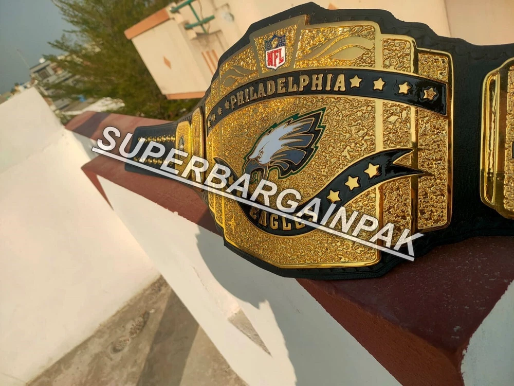 Welcome to our shop ------------------------------------------- We are specialist in manufacturing handmade products:: Our wide range of products include: >>>>Championship Belts WWE | WWF | AEW | UFC | WBC | WCW Product Description ** Philadelphia Eagles championship belt *** Plate Metal: Brass (Zinc available on request with additional cost) Strap: 100% Leather Largest Waist Size: Fits upto 46'' Belt Length: ~50" Weight: 6.17 lbs | 2.81 Kg Plate Thickness: 2mm (4mm Version available on demand with additional cost) ::The belt is well crafted and manufactured to meet the quality demands of fans:: Get your hands on this marvelous piece now! Note: If you need further details kindly inbox us, we will try to be as responsive as possible. ------------------------------------------- Return Policy: Generally we don't have much complains on our products and we make sure to 100% satisfy our clients. We send the product in well Bubble Wrapped packaging so there is highly unlike chance of getting damaged item. In case there is a damage, we will try to give partial refund or you can ask for full refund within 30 days after returning the belt to origin. NOTE: 1. If you have placed the order by mistake or you have purchased a wrong item then we are not going to refund that. 2. Buyer will pay the shipping fee of returning the belt. ------------------------------------------- Happy Shopping! :)