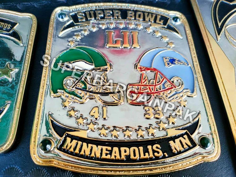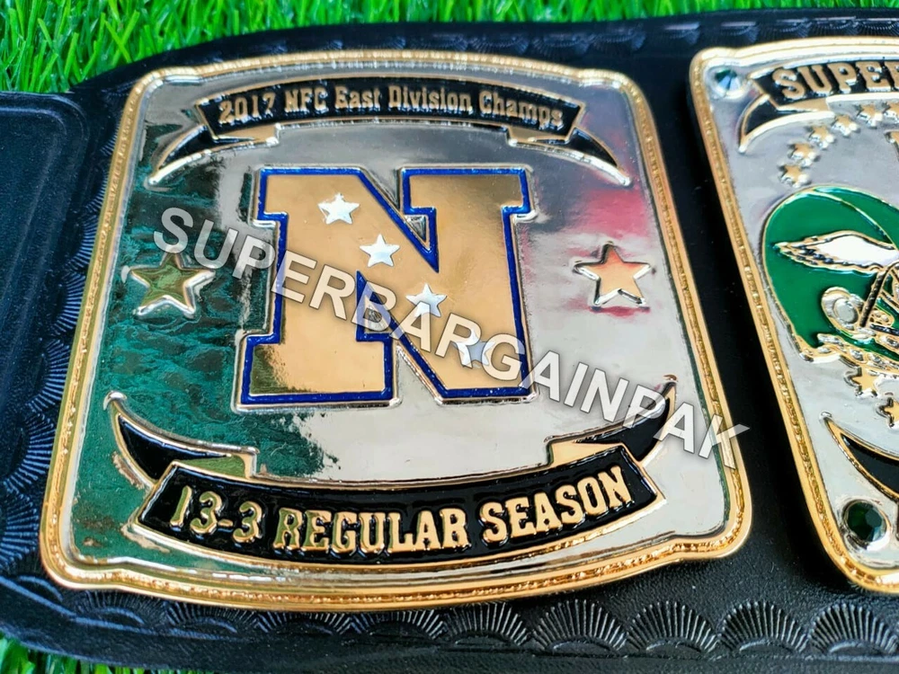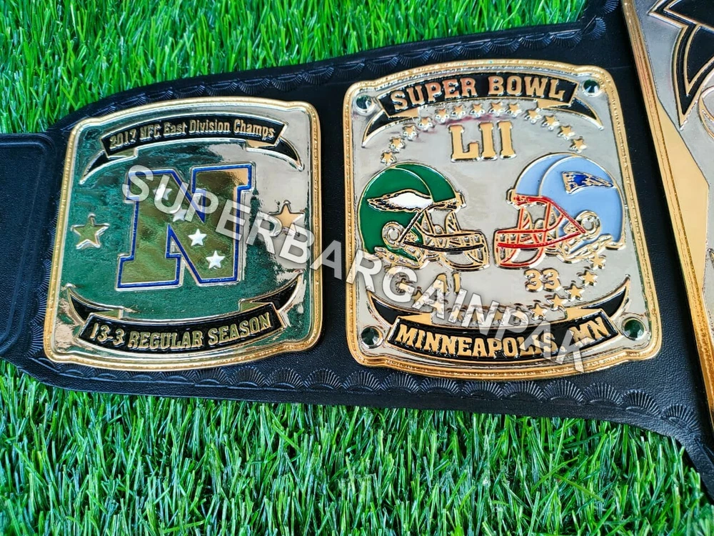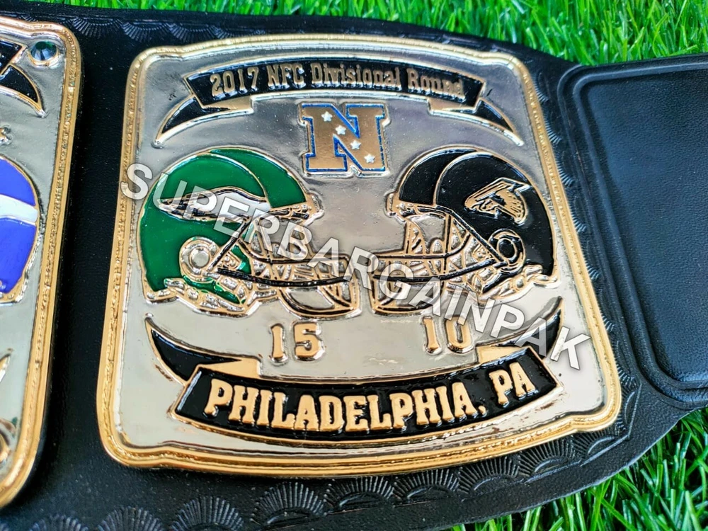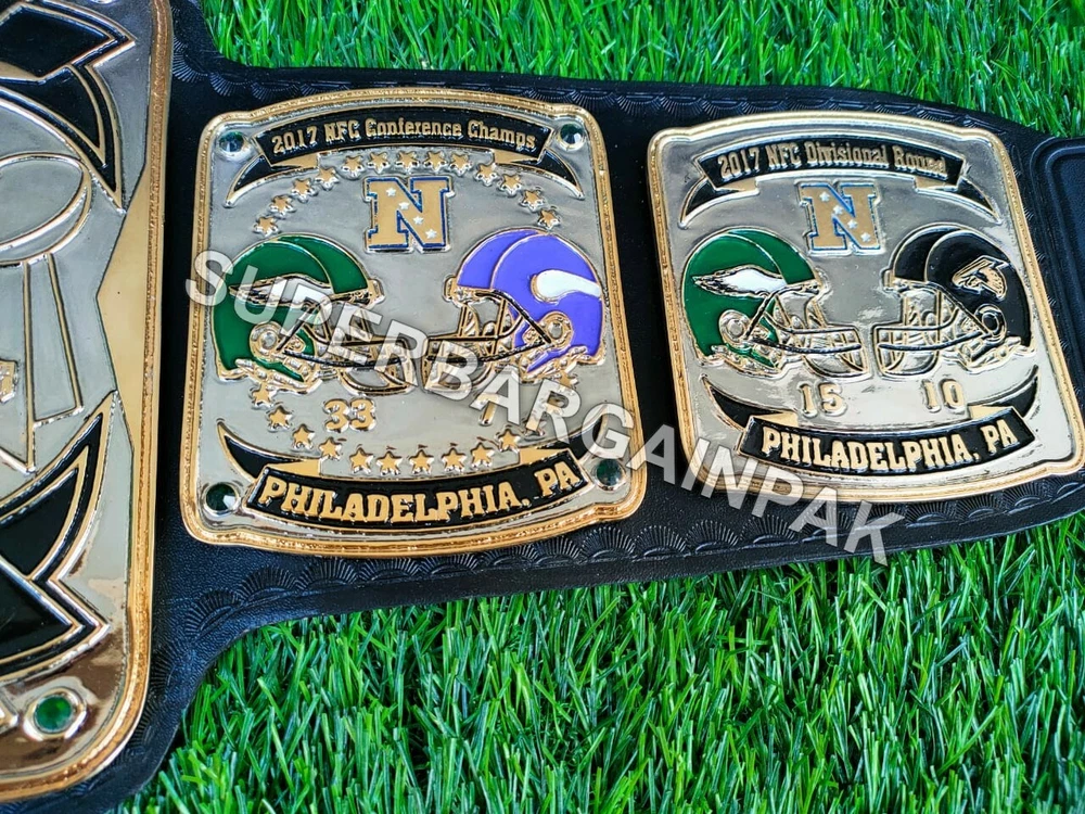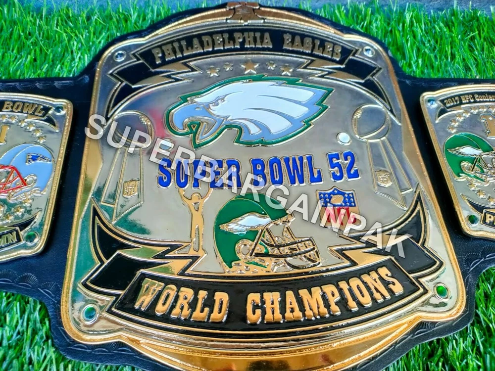 Welcome to our shop ------------------------------------------- We are specialist in manufacturing handmade products:: Our wide range of products include: >>>>Championship Belts WWE | WWF | AEW | UFC | WBC | WCW Product Description ** Philadelphia Eagles championship belt *** Plate Metal: Brass (Zinc available on request with additional cost) Strap: 100% Leather Largest Waist Size: Fits upto 46'' Belt Length: ~50" Weight: 6.17 lbs | 2.81 Kg Plate Thickness: 2mm (4mm Version available on demand with additional cost) ::The belt is well crafted and manufactured to meet the quality demands of fans:: Get your hands on this marvelous piece now! Note: If you need further details kindly inbox us, we will try to be as responsive as possible. ------------------------------------------- Return Policy: Generally we don't have much complains on our products and we make sure to 100% satisfy our clients. We send the product in well Bubble Wrapped packaging so there is highly unlike chance of getting damaged item. In case there is a damage, we will try to give partial refund or you can ask for full refund within 30 days after returning the belt to origin. NOTE: 1. If you have placed the order by mistake or you have purchased a wrong item then we are not going to refund that. 2. Buyer will pay the shipping fee of returning the belt. ------------------------------------------- Happy Shopping! :)