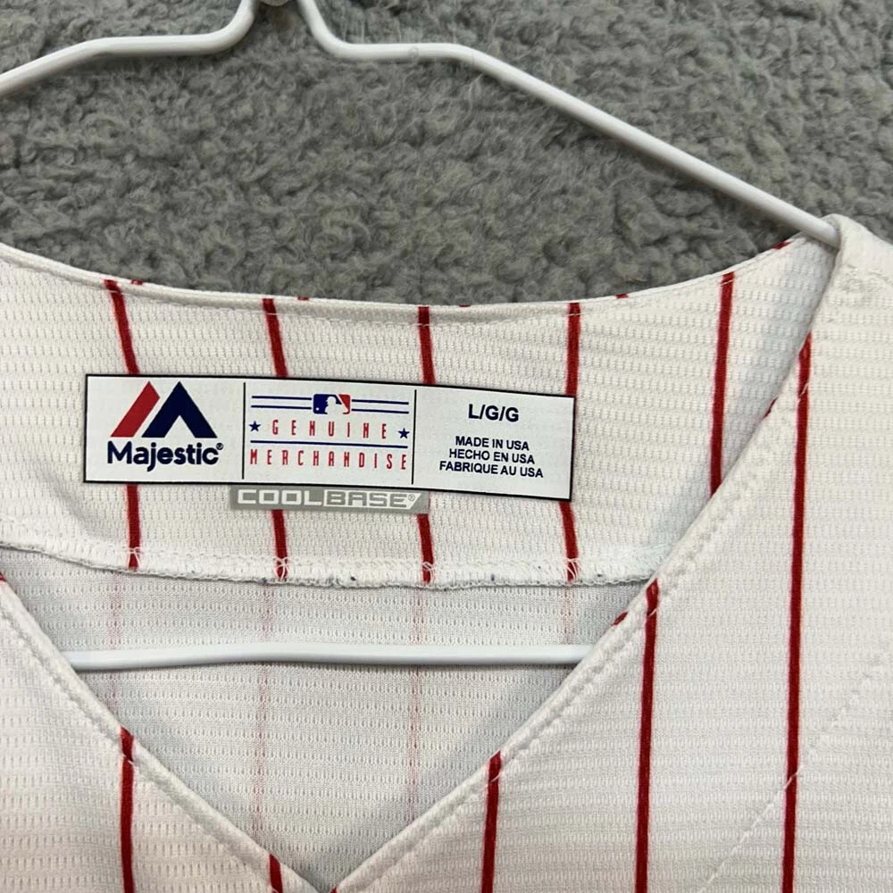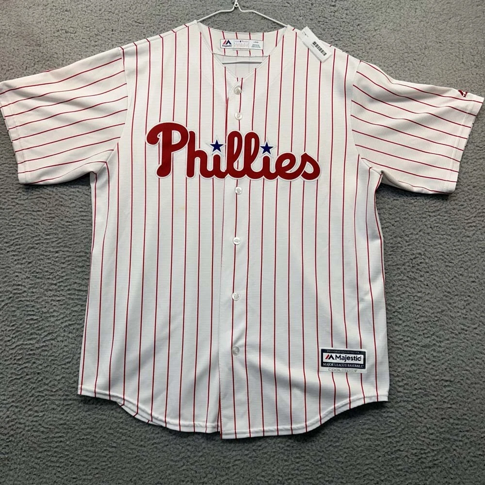 Team:Philadelphia PhilliesProduct:JerseyGender:MenBrand:MajesticOfficially Licensed:0League:Major League (MLB)Color:WhiteSize:LPre & Post Season:Regular Season