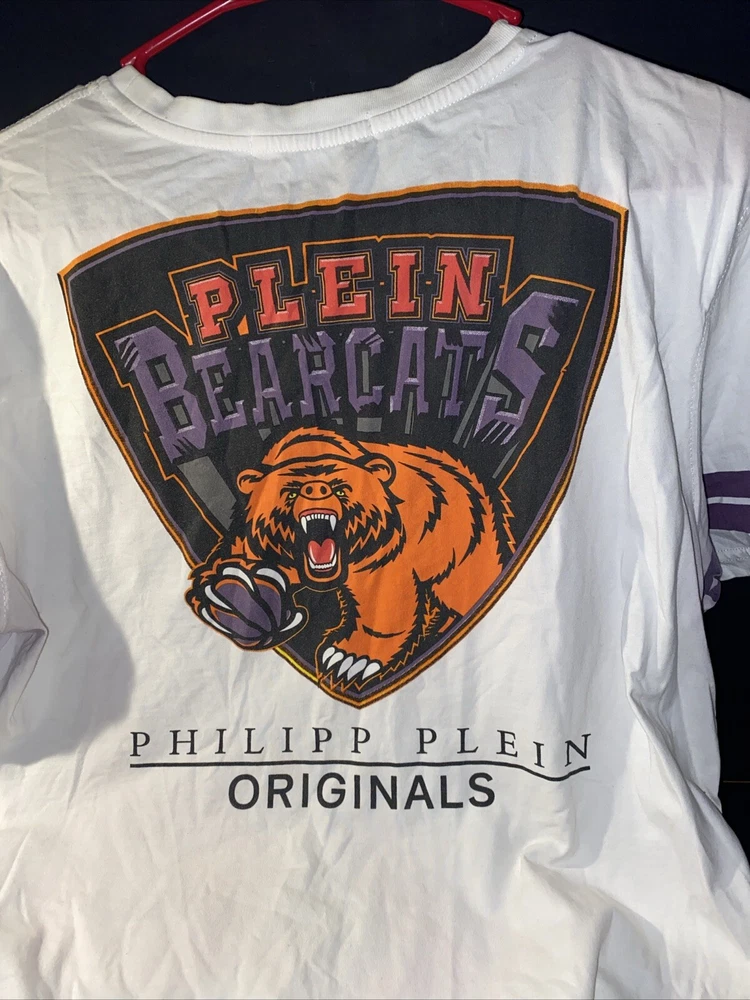 This Philipp Plein sport shirt is a must-have for any fashion-conscious man. The shirt features a solid pattern with short sleeves and a regular fit, making it perfect for any casual occasion. The shirt is made of high-quality materials and is designed to be double-sided, adding an extra element of style to the shirt. The shirt is perfect for fans of the Bearcats and features their logo prominently on the shirt. The shirt is available in size XL and is multicolored, making it a great addition to any wardrobe. The shirt is designed with accents that add an extra touch of style to the shirt, making it perfect for any sports-themed occasion.