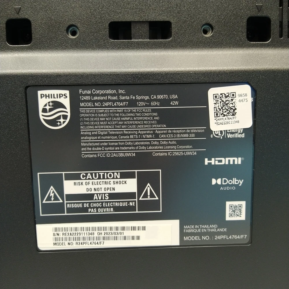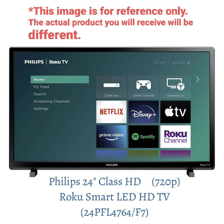 PHILIPS 24" Class HD Roku Smart LED HDTV - 24PFL4764/F7 Product details Philips 24" Class HD Roku Smart LED HDTV (24PFL4764/F7) is a smart TV that’s simple to use, with tons of free content. Stream your favorite entertainment, get access to your cable box or HD antenna, or even fire up your gaming console – all from your home screen. With an easy-to-use remote and automatic software updates, Smart TV has never been easier. Roku Smart HDTV: Enjoy 150,000+ movies and TV episodes High Definition: 720p for ultra-sharp images Built-in Wireless: Easily connect to your wireless network via Wireless LAN 802.11ac Free Roku Mobile App: Makes it easy and fun to control your Roku TV 120 Perfect Motion Rate: 120 PMR delivers unprecedented motion sharpness to your TV Fast and Easy search: Search by title, actor, director to see where to stream your favorite shows for free or at the lowest price Works with Apple AirPlay: Effortlessly stream videos, photos, music, and more from your Apple device to your TV with AirPlay Works with Voice Assistant: Enjoy easy voice control with Hey Google, Alexa, and Siri R2 Grade : C6F3 Hereby certified renewed product is inspected in the US for OEM specifications and factory initialization for a clean device. Shop with confidence! “As an certified service center, we strictly enforce data sanitization, and we have confirmed that the renewed products sold here do not contain data.”