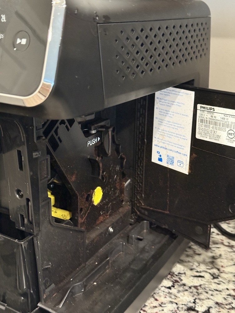 ⚠️ Condition Notes: • The machine powers on, but does not function properly • The connector for the water tank is damaged, so water cannot be supplied • Cosmetic damage present on the exterior (see photos) • Not a complete set – only includes what is shown in the photos • No water tank, no accessories (unless visible in photos) Included: • Espresso machine body only (see images for exact contents) Important: • Sold AS-IS for parts or repair • No returns or guarantees Please review all images carefully before purchase. Feel free to reach out with any questions!