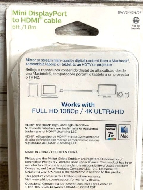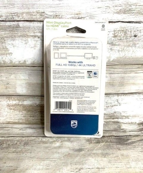 This Mini DisplayPort to HDMI cable by Philips delivers a reliable connection for streaming high-quality digital content. It supports Full HD and 4K Ultra HD resolutions. • Length: 6 ft (1.8m) • Compatible with MacBook, laptops, tablets, HDTVs, and projectors • Supports Full HD 1080p and 4K Ultra HD resolutions • Designed for audio and video streaming Our photos are considered part of the item’s description. Please examine the photos carefully for any flaws or imperfections that we may have missed that may not be to your desired taste before purchasing, please feel free to message for more photos and or details. All items we collect get sanitized, cleaned, laundered (if possible). Items such as leather bags and footwear undergo cleaning with proper earth friendly products and leather conditioners to ensure your products arrive to you in the best condition as possible. We ship Monday-Friday and diligently package, so your items arrive safe and protected.