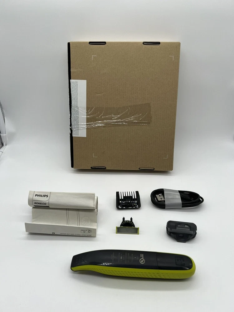 Philips Norelco OneBlade 360 Face Hybrid Electric Beard Trimmer QP2724/90 (Q5(7) It’s brand new, open box. OneBlade Technology: the fast-moving cutter (12,000x min) is efficient, even on longer hairs; the dual Protection System with glide coating plus rounded tips makes shaving easier and more comfortable Innovative 360 Blade: it can flex in all directions to enable constant skin contact and control; easily trim and shave, even the most difficult-to-reach areas with fewer passes and greater comfort¹ Designed to cut hair not skin: trim your beard to an even stubble length with the 5in1 comb (1-5mm), create precise edges thanks to the dual-sided blade, and shave off any length of hair easily Easy grooming anywhere: take it in the shower and use wet or dry; 45-minute battery with USB charging and compact handle make it the perfect travel companion The set includes: 1x Philips Norelco OneBlade 360, 1x 360 Blade, 1x 5in1 adjustable comb (1-5mm), 1x protection cap, 1x USB-A charging cable, a user manual (power adapter not included)
