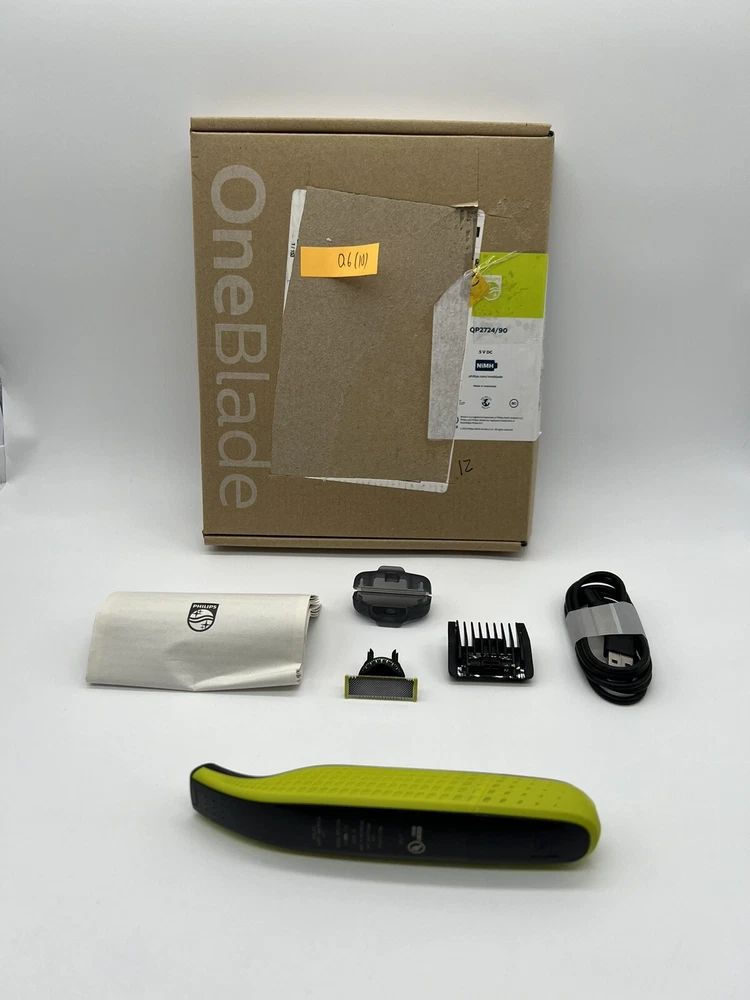 Philips Norelco OneBlade 360 Face Hybrid Electric Beard Trimmer QP2724/90 (Q6(10) It’s brand new, open box. OneBlade Technology: the fast-moving cutter (12,000x min) is efficient, even on longer hairs; the dual Protection System with glide coating plus rounded tips makes shaving easier and more comfortable Innovative 360 Blade: it can flex in all directions to enable constant skin contact and control; easily trim and shave, even the most difficult-to-reach areas with fewer passes and greater comfort¹ Designed to cut hair not skin: trim your beard to an even stubble length with the 5in1 comb (1-5mm), create precise edges thanks to the dual-sided blade, and shave off any length of hair easily Easy grooming anywhere: take it in the shower and use wet or dry; 45-minute battery with USB charging and compact handle make it the perfect travel companion The set includes: 1x Philips Norelco OneBlade 360, 1x 360 Blade, 1x 5in1 adjustable comb (1-5mm), 1x protection cap, 1x USB-A charging cable, a user manual (power adapter not included)