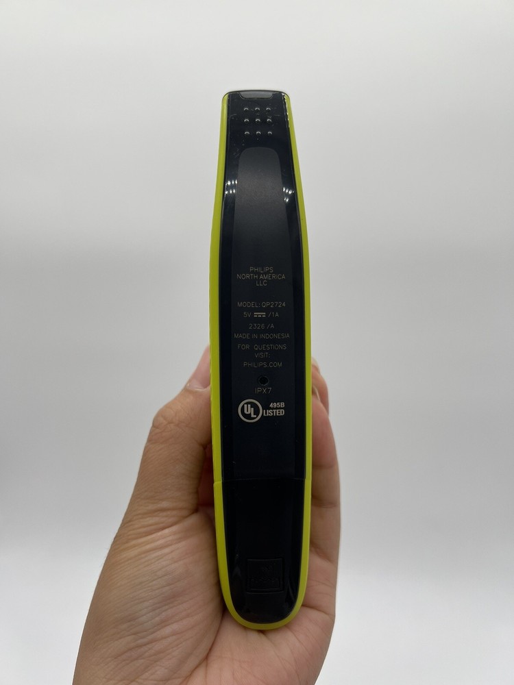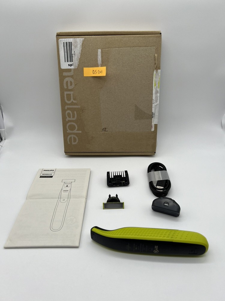 Philips Norelco OneBlade 360 Face Hybrid Electric Beard Trimmer QP2724/90 (Q5(20) It’s brand new, open box. OneBlade Technology: the fast-moving cutter (12,000x min) is efficient, even on longer hairs; the dual Protection System with glide coating plus rounded tips makes shaving easier and more comfortable Innovative 360 Blade: it can flex in all directions to enable constant skin contact and control; easily trim and shave, even the most difficult-to-reach areas with fewer passes and greater comfort¹ Designed to cut hair not skin: trim your beard to an even stubble length with the 5in1 comb (1-5mm), create precise edges thanks to the dual-sided blade, and shave off any length of hair easily Easy grooming anywhere: take it in the shower and use wet or dry; 45-minute battery with USB charging and compact handle make it the perfect travel companion The set includes: 1x Philips Norelco OneBlade 360, 1x 360 Blade, 1x 5in1 adjustable comb (1-5mm), 1x protection cap, 1x USB-A charging cable, a user manual (power adapter not included)