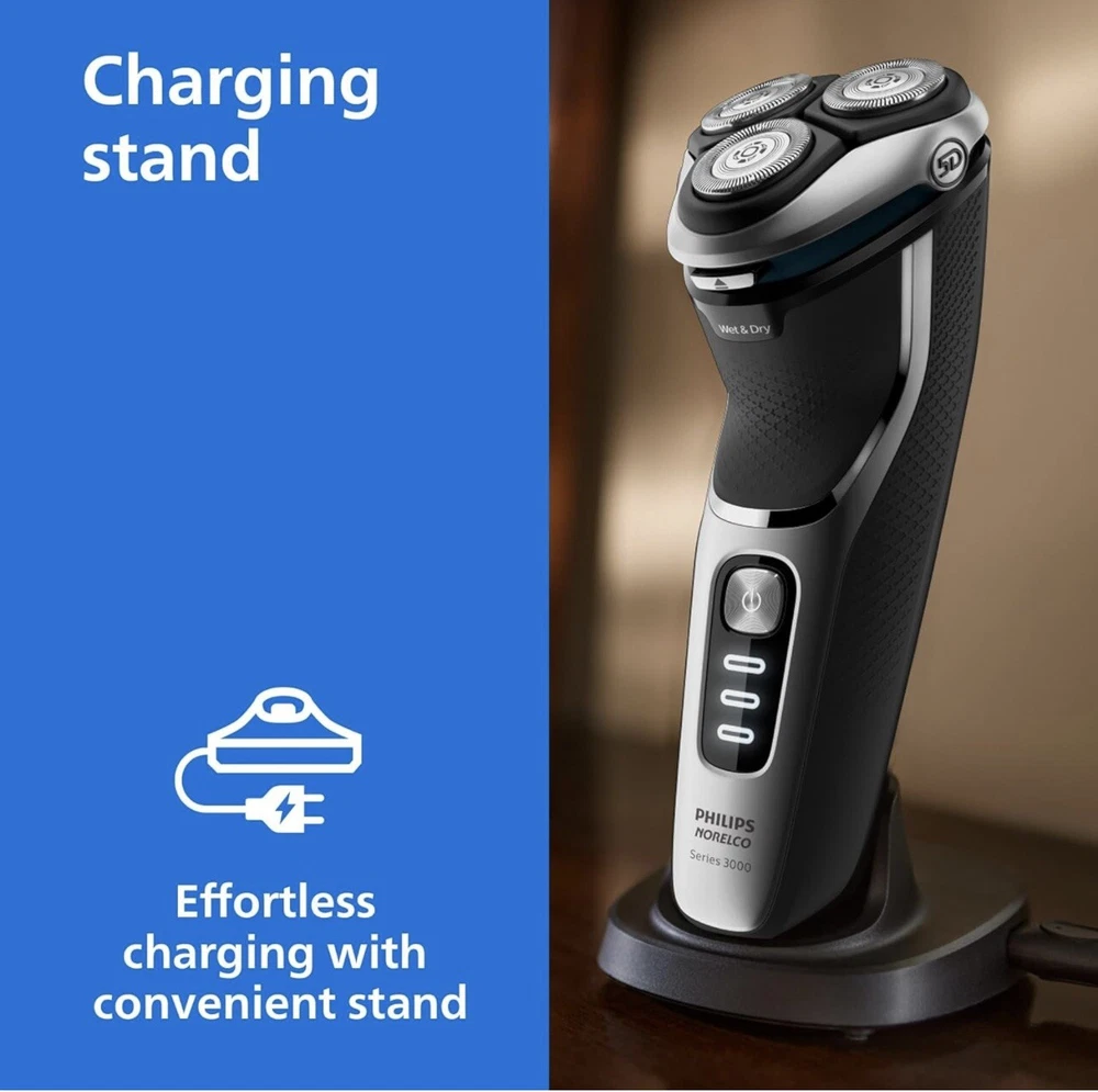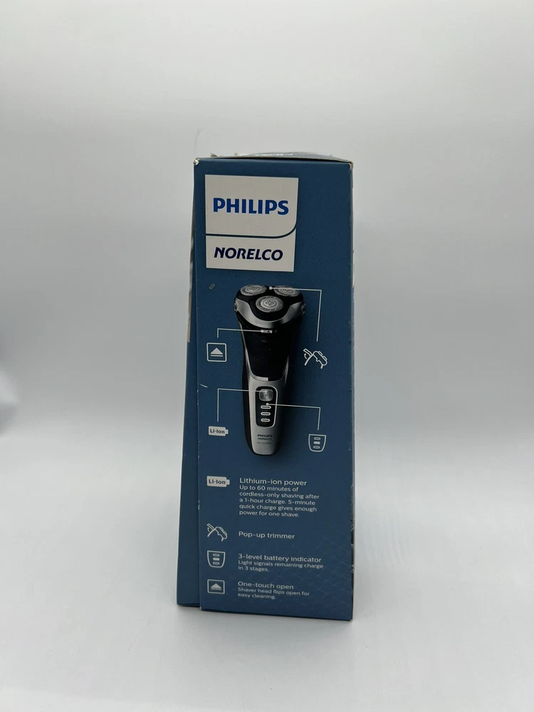 Philips Norelco Shaver 3800 Wet & Dry S3311/85 Used, tested it works. Item: Q2(19) Enjoy a clean shave that follows your face's contours with 5-directional pivot, flex and floating movements. The head reaches your face at the ideal angle and adjusts to the curves of your face and neck, creating smooth contact with your skin. Get a convenient dry shave or a refreshing wet shave with gel or foam, even in the shower. With ComfortCut blades, you get a clean shave that's comfortable on your skin. Rounded caps shield 27 self-sharpening blades to gently cut hair just above skin level and help the shaver glide smoothly over your skin. Finish your look with the built-in pop-up trimmer. It’s ideal for maintaining your mustache and trimming your sideburns. Shave for up to 60 minutes on a 1-hour charge - that's about 20 shaves - with the powerful Li-ion battery. A 5-minute quick charge gives enough power for one shave. Operates in cordless mode only.