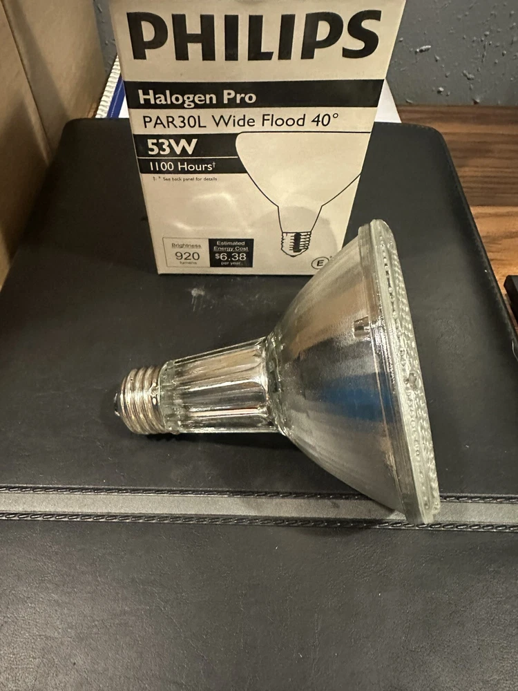 Philips Halogen Pro PAR30L 53W Wide Flood Light Dimming 1100 hours 920 lumens Will Do Quantity Discounts. Send me a message or offer.