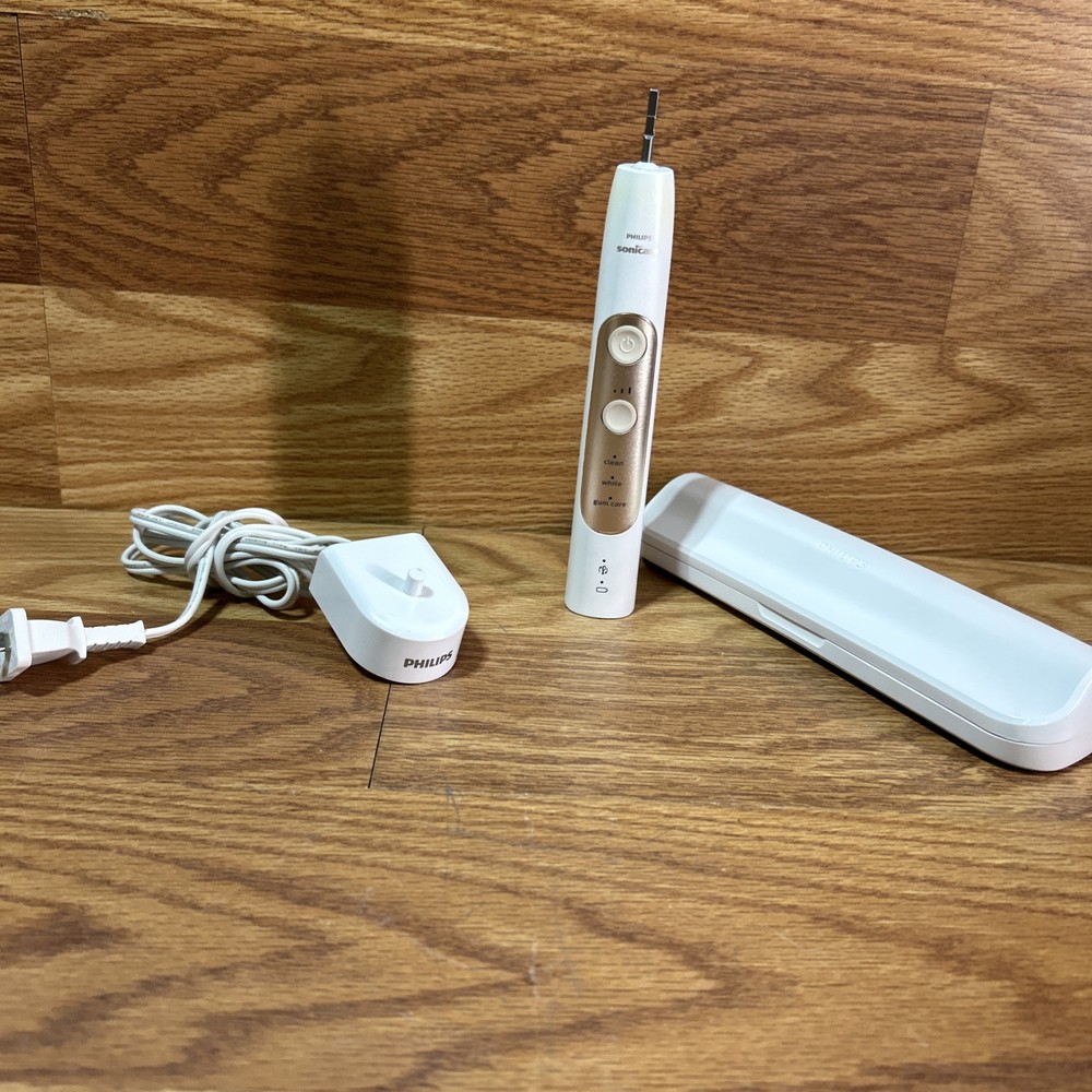 Philips HX751G Sonicare Perfect Clean Rechargeable Toothbrush, Gold ⚠️ used ⚠️ . This article is used as shown in the photos, only that in the conditions it does not give me the option to put it It has a yellow stain on the top but it works very well Does not include box charger or some other accessories ONLY comes with what's pictured. Please review pictures prior to purchase. We appreciate all business and would recommend sending a message if any issue or concern comes up. Thanks!”