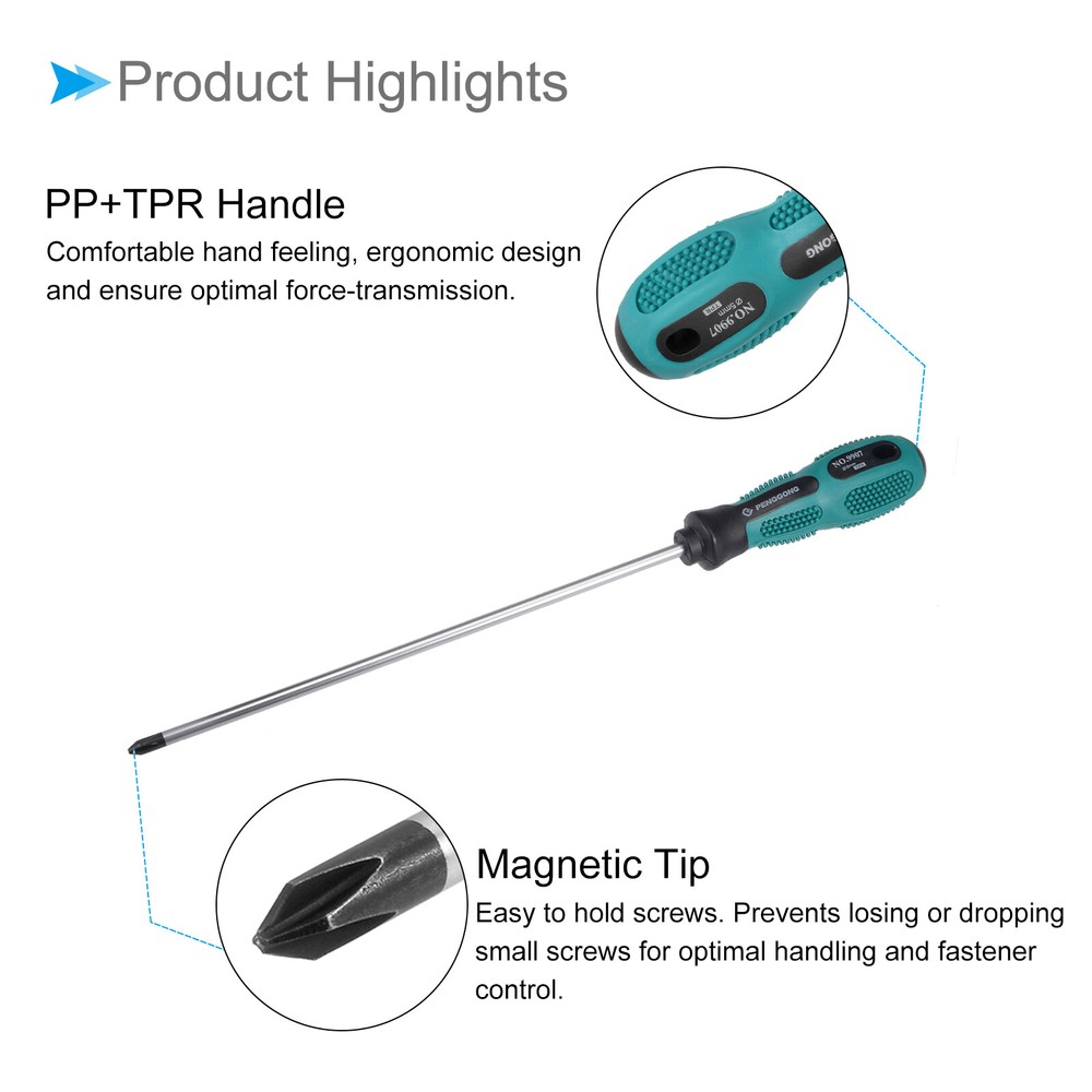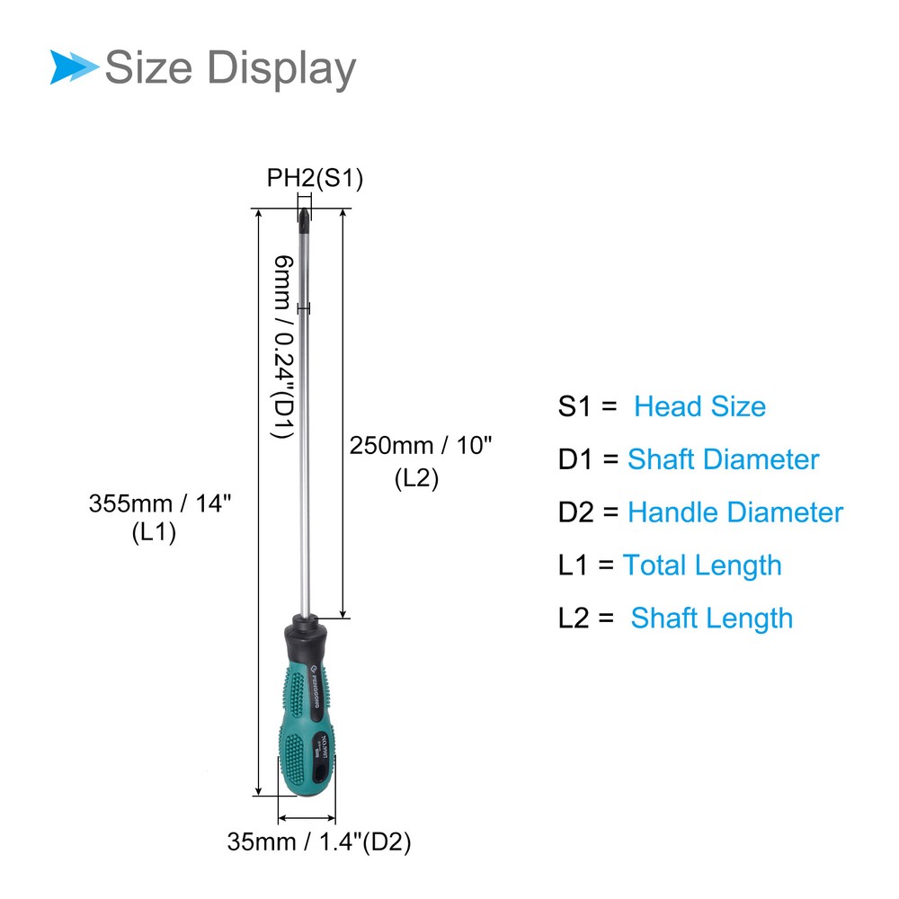 Document Attributes:* Head Size: PH2 (#2)* Shaft Size: 250mm x 6mm / 10" x 0.24" (L*D)* Handle Size: 35mm x 110mm / 1.4" x 4.3" (Max.D*L)* Total Length: 355mm / 14"* Material: Chrome Vanadium Steel, PP+TPR* Finish: Chrome PlatedWhat Is Included:* 1 Piece x Cross Head ScrewdriverApplications & Features:--- Suitable for car repair, DIY hand-making, home improvement, and most general repairs.--- The shaft is constructed from chrome vanadium steel with quenching treatment for high hardness and good toughness.--- The PP+TPR handle has comfortable hand feeling, ergonomic design and ensure optimal force-transmission.--- Magnetic tips, easy to hold screws. Prevents losing or dropping small screws for optimal handling and fastener control.Useful Tips:--- Don't turn the screws with mismatched sizes to avoid damage to both the screw and the screwdriver. Phillips Screwdriver,#2 Cross Head 10" CR-V,for Home Appliances Repair Attributes: * Head Size: PH2 (#2) * Shaft Size: 250mm x 6mm / 10" x 0.24" (L*D) * Handle Size: 35mm x 110mm / 1.4" x 4.3" (Max.D*L) * Total Length: 355mm / 14" * Material: Chrome Vanadium Steel, PP+TPR * Finish: Chrome Plated What Is Included: * 1 Piece x Cross Head Screwdriver Applications & Features: --- Suitable for car repair, DIY hand-making, home improvement, and most general repairs. --- The shaft is constructed from chrome vanadium steel with quenching treatment for high hardness and good toughness. --- The PP+TPR handle has comfortable hand feeling, ergonomic design and ensure optimal force-transmission. --- Magnetic tips, easy to hold screws. Prevents losing or dropping small screws for optimal handling and fastener control. Useful Tips: --- Don't turn the screws with mismatched sizes to avoid damage to both the screw and the screwdriver. Hot Item Payment 1.We accept eBay payment . 2.Payment must be received within 7 business days of auction closing. Shipping 1.We ship to your eBay or Paypal address. Please make sure your eBay and Paypal address is correct before you pay. 2.Items will be shipped within 1-3 business day when we received payment. 3.Delivery time depends on destination and other factors. Description Policy Phillips Screwdriver,#2 Cross Head 10" CR-V,for Home Appliances Repair Attributes: * Head Size: PH2 (#2) * Shaft Size: 250mm x 6mm / 10" x 0.24" (L*D) * Handle Size: 35mm x 110mm / 1.4" x 4.3" (Max.D*L) * Total Length: 355mm / 14" * Material: Chrome Vanadium Steel, PP+TPR * Finish: Chrome Plated What Is Included: * 1 Piece x Cross Head Screwdriver Applications & Features: --- Suitable for car repair, DIY hand-making, home improvement, and most general repairs. --- The shaft is constructed from chrome vanadium steel with quenching treatment for high hardness and good toughness. --- The PP+TPR handle has comfortable hand feeling, ergonomic design and ensure optimal force-transmission. --- Magnetic tips, easy to hold screws. Prevents losing or dropping small screws for optimal handling and fastener control. Useful Tips: --- Don't turn the screws with mismatched sizes to avoid damage to both the screw and the screwdriver. Hot Item Payment 1.We accept eBay payment . 2.Payment must be received within 7 business days of auction closing. Shipping 1.We ship to your eBay or Paypal address. Please make sure your eBay and Paypal address is correct before you pay. 2.Items will be shipped within 1-3 business day when we received payment. 3.Delivery time depends on destination and other factors.