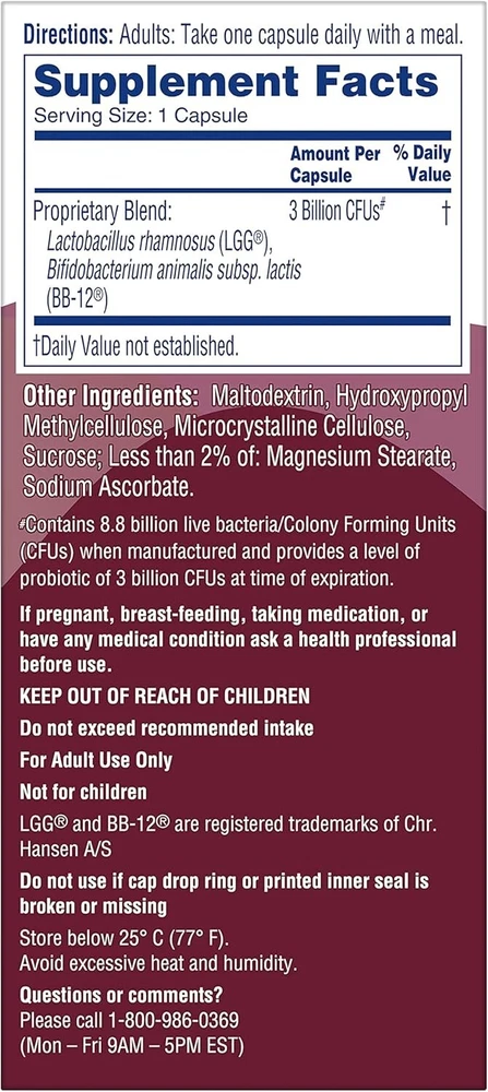 Phillips’ Colon Health Daily Probiotic Dietary Supplement (Pack of 30 Capsules). Expiry 01/25 Daily Colon Health Probiotic For Men And Women: Taking Phillips’ Colon Health Daily Probiotic helps replenish good bacteria and supports digestive and immune health* 4-In-1 Symptom Defense: Helps defend against occasional gas, bloating, constipation, and diarrhea* Helps Replenish Good Bacteria And Supports Digestive And Immune Health*: The colon (large intestine) is critical to digestive health. It is the “hub” for good bacteria in your gut, where most of the bacteria actually live Contains Specially Selected Probiotics: Lactobacillus rhamnosus (LGG) and Bifidobacterium (BB-12). Non-GMO; Gluten Free; Dairy Free and Soy Free. No refrigeration required 3 Billion CFUs At Time Of Expiry: Phillips’ Colon Health promises 3 Billion CFUs (colony forming units, which are the number of live bacteria) at time of expiry
