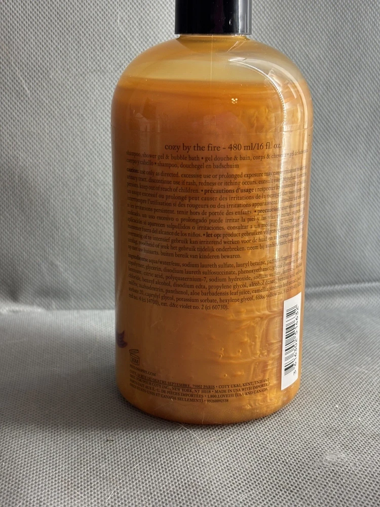Department: Unisex UPC: 3616302514632 Volume: 16 fl oz Type: Shower Gel Body Area: Body, Hair Scent: Cozy By The Fire Brand: Philosophy Size: 16 fl oz gtin13: 3616302514632