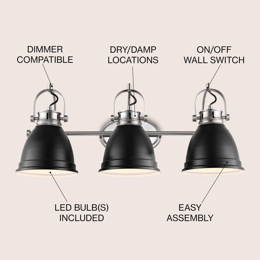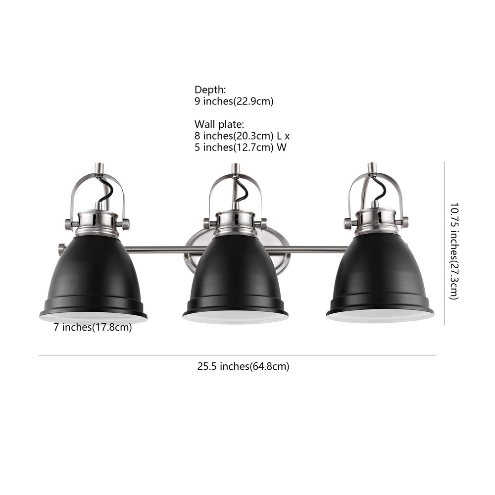 The vintage look of this triple wall light makes it perfect for an industrial, farmhouse or coastal interior. A high-quality finish and painted metal shade add low-key cottage style over a bathroom mirror or kitchen sink. The bright LED bulb provides plenty of soft light to warm up your space. QUALITY CONSTRUCTION: Wall light fixtures are used as general lighting; Available in amazing variety; Replacing old, outdated wall lights is a fast and affordable way to update your home design ENERGY-SAVING LED BULBS INCLUDED: LED bulbs are included with every light fixture; All of our lighting is ETL Listed and meets 120-volt UL standards for safety and quality; Professional installation is recommended for all wall light fixtures SATISFACTION GUARANTEED: Every design is created with uncompromising attention to detail, using only the highest quality components; Based in Soho, New York, designer Jonathan and his talented team create affordable high-end home decor Replace outdated wall sconces or vanity lights with this modern classic for an instant vintage-inspired makeover This 3-light fixture is perfect for a single sink in a large bathroom; or use one over each sink on a double vanity.