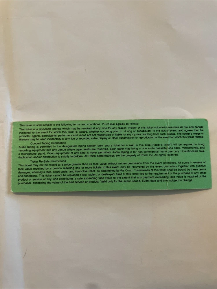 This Phish concert stub from 10/10/99 at Pepsi Arena is a must-have for any fan of the band. Featuring the iconic artwork of Pollock, this ticket is a unique piece of music memorabilia that captures the essence of the band's live performances. The ticket is in great shape and is a rare find for collectors. With attributes like Industry, Music, Artist/Band, Genre, and Rock & Pop, this ticket is a valuable addition to any collection of entertainment memorabilia. Don't miss your chance to own a piece of Phish history with this incredible ticket stub.